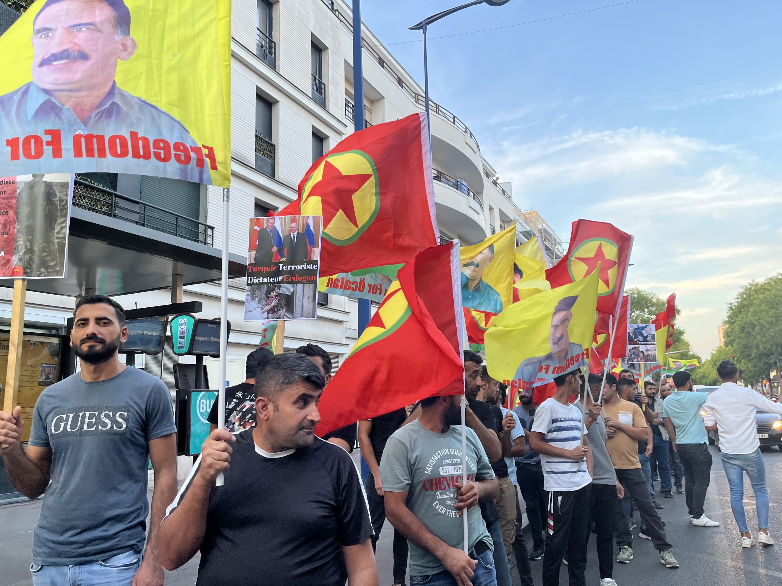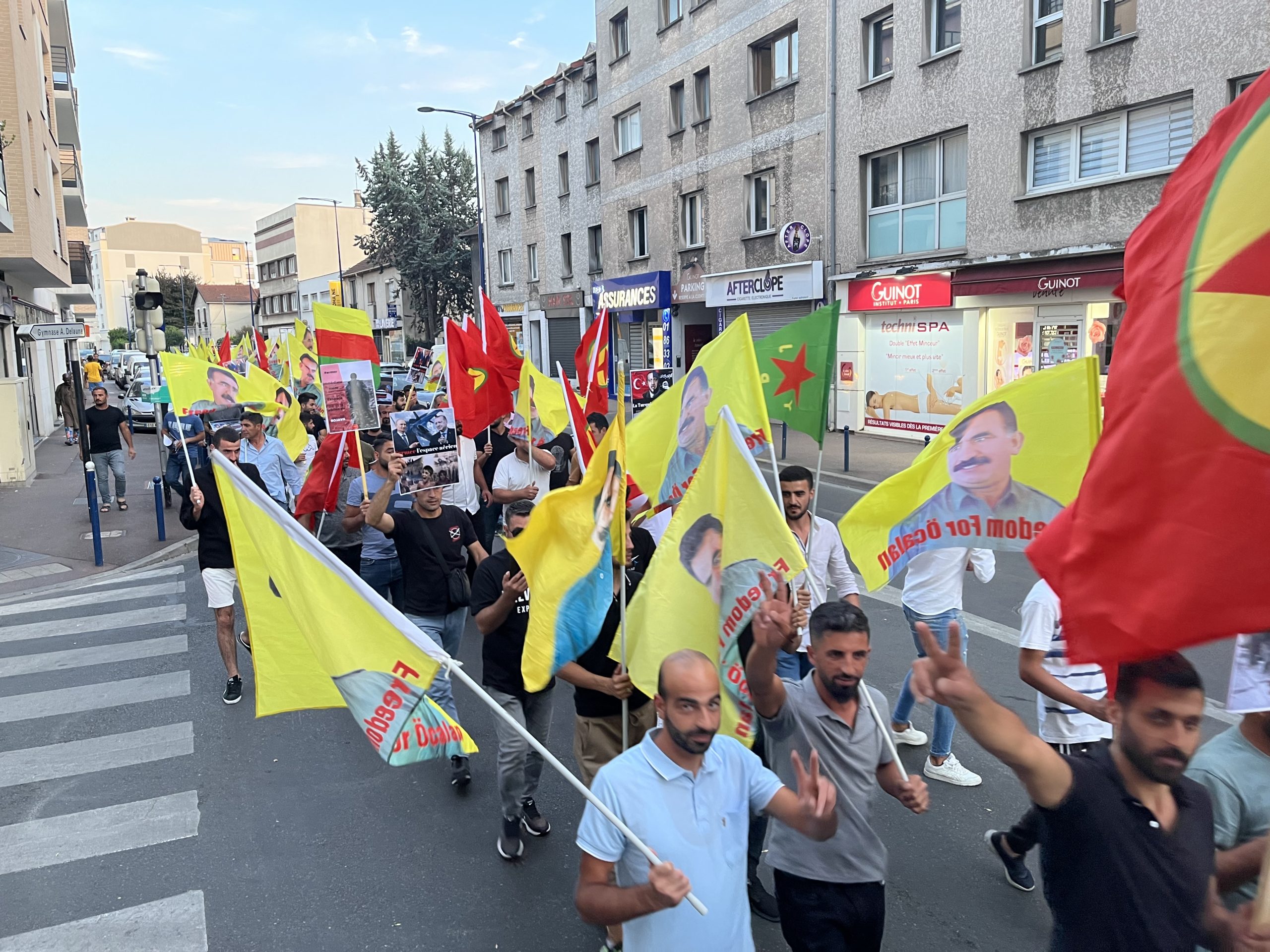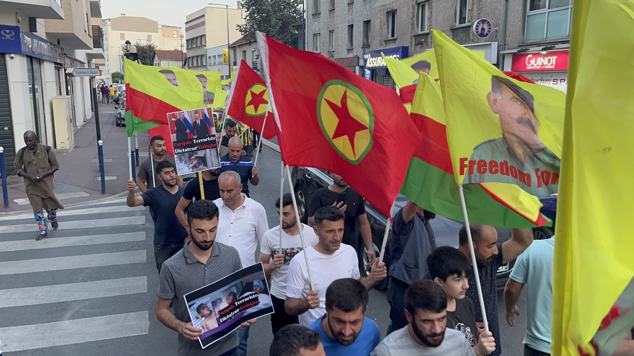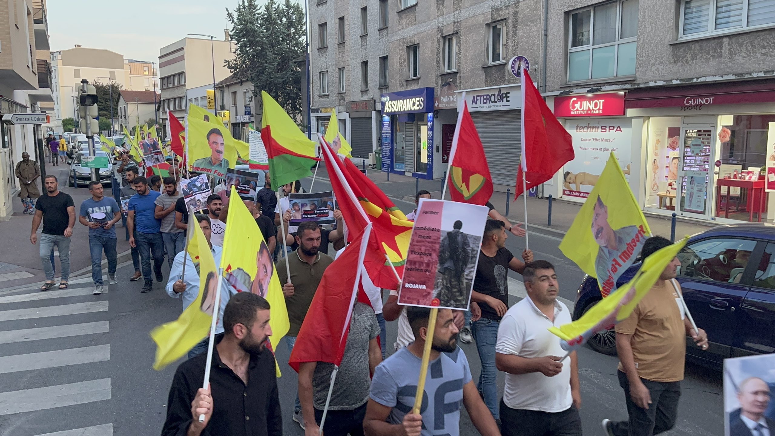 Drancy DKTM önünde başlayan yürüyüş Drancy Belediyesi’ne kadar “Stop War On Mexmur “ (Mexmur’da Savaşı Durdur) pankartıyla gerçekleşti. Sık sık “Katil Erdoğan “, “İşgalci TC”, “ Biji Berxwedana Mexmur” sloganları atıldı. Daha sonra TCŞ VE DKTM adına yapılan açıklamada “Kürt katliamını ve soykırımını hedefleyen işgalci Türk ordusunun Mexmur ve Şengal’e dönük gerçekleştirdiği saldırı Kürdistan halkı ve kazanımlarına topyekûn hedeflemektedir” denildi.