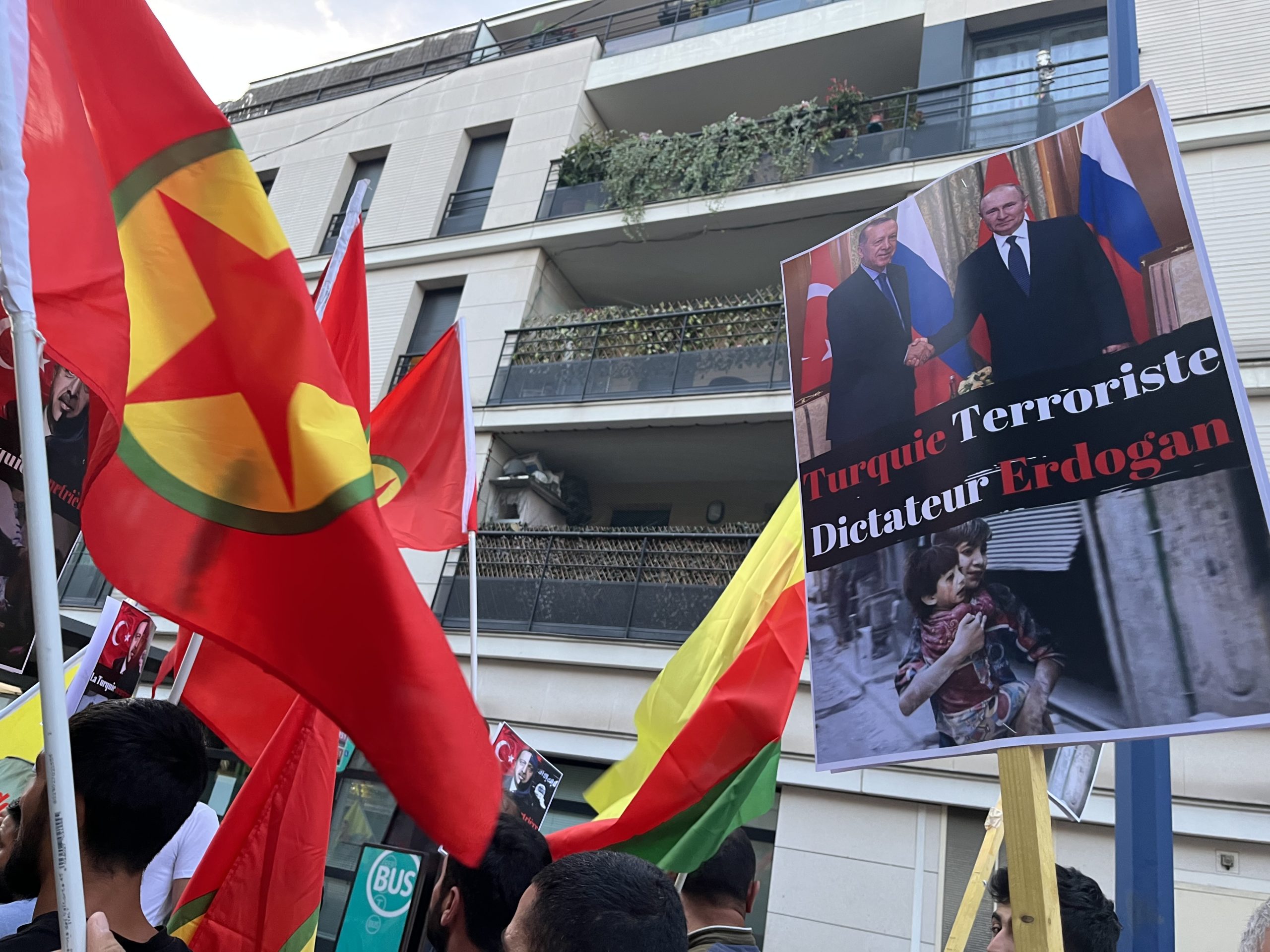 DRANCY –  Avrupa Devrimci Gençlik Hareketi (TCŞ) ve Demokratik Kürt Toplum Merkezi (DKTM) öncülüğünde Paris’e bağlı Drancy Banliyösünde yurtsever Kürt halkı işgalci Türk ordusunun Maxmur’a yönelik hava saldırısını protesto etti.