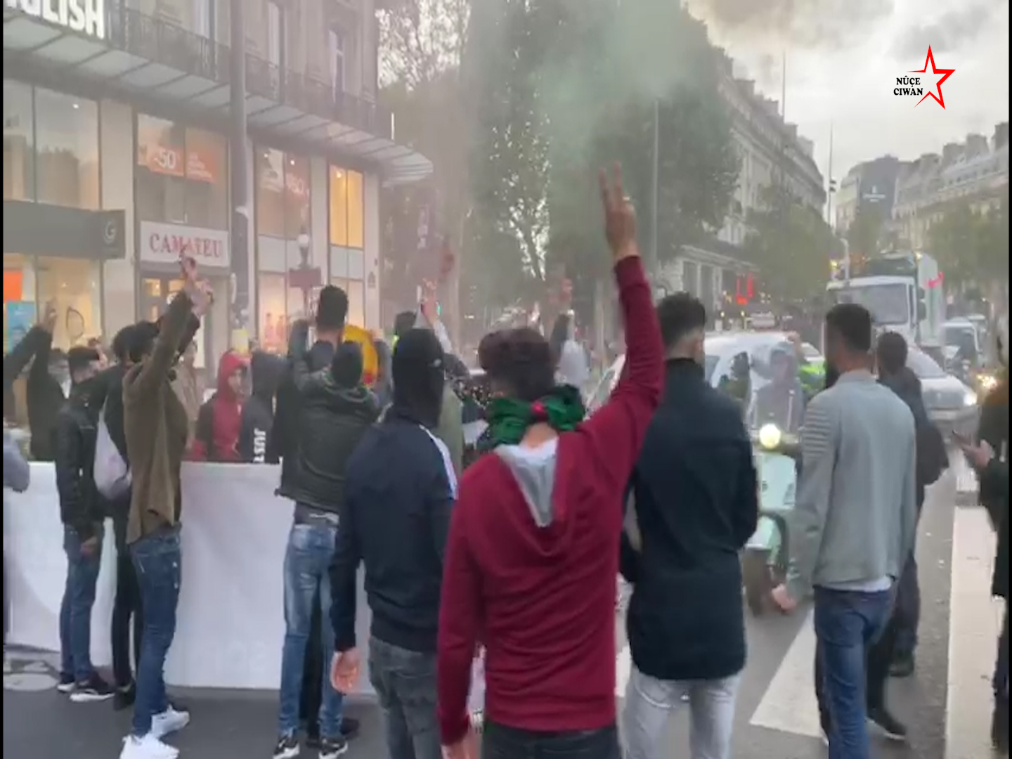 Paris’in en merkezi yeri olan République Meydanı’nda saat 18’de bir araya gelen gençler, meydana açılan yolu trafiğe kapattı. Gençler, ellerinde Fransızca ‘Katil Erdoğan’ yazılı pankart ile yolu trafiğe kapatırken, sarı, kırmızı ve yeşil meşalele de yaktı. Yaklaşık 20 dakika yolu trafiğe kapatan gençler daha sonra buradan ayrılıp bir yürüyüş gerçekleştirdi. Paris’in en işlek sokaklarında yüze yakın gençle yapılan yürüyüşte sık sık ‘Yaşasın Rojava direnişi’ ve ‘Katil Erdoğan’ sloganları atıldı. Çevredeki insanların da dikkatini çeken eylem yaklaşık 2 saat sürdü.