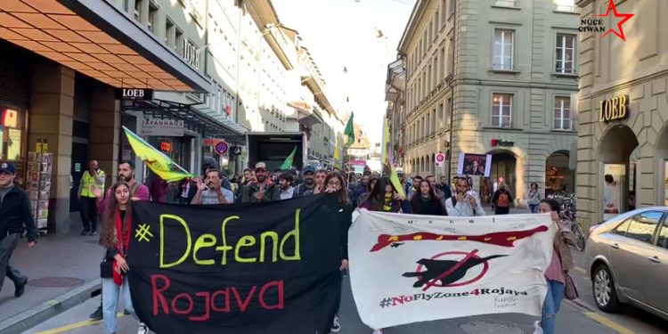 BERN – Parlamentonun önündeki miting bittikten sonra Kürt gençleri Girê Spî’de gerçekleştirilen katliamı protesto etmek için yeni bir eyleme başladı. Yürüyüşe geçen gençler, şehrin en işlek caddelerinden birini trafiğe kapattılar. Yaklaşık 20 dakika boyunca trafiği kapatan gençler ardından merkez tren istasyonuna geçerek sivil itaatsizlik eylemlerine burada devam etti. Burada da yaklaşık yarım saat eylemlerine devam eden gençler daha sonra eylemlerini sonlandırdı.