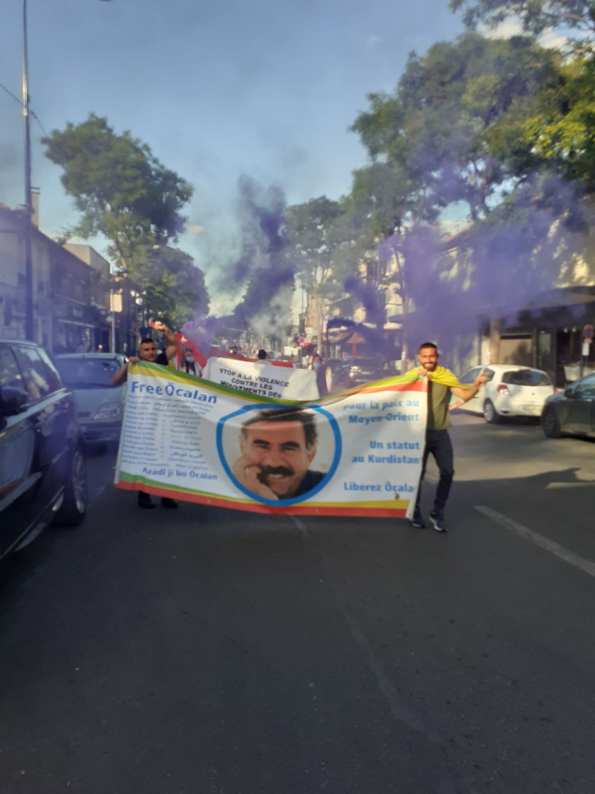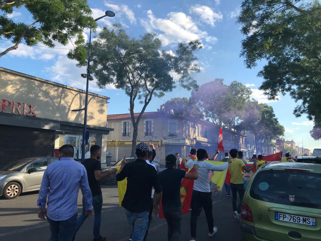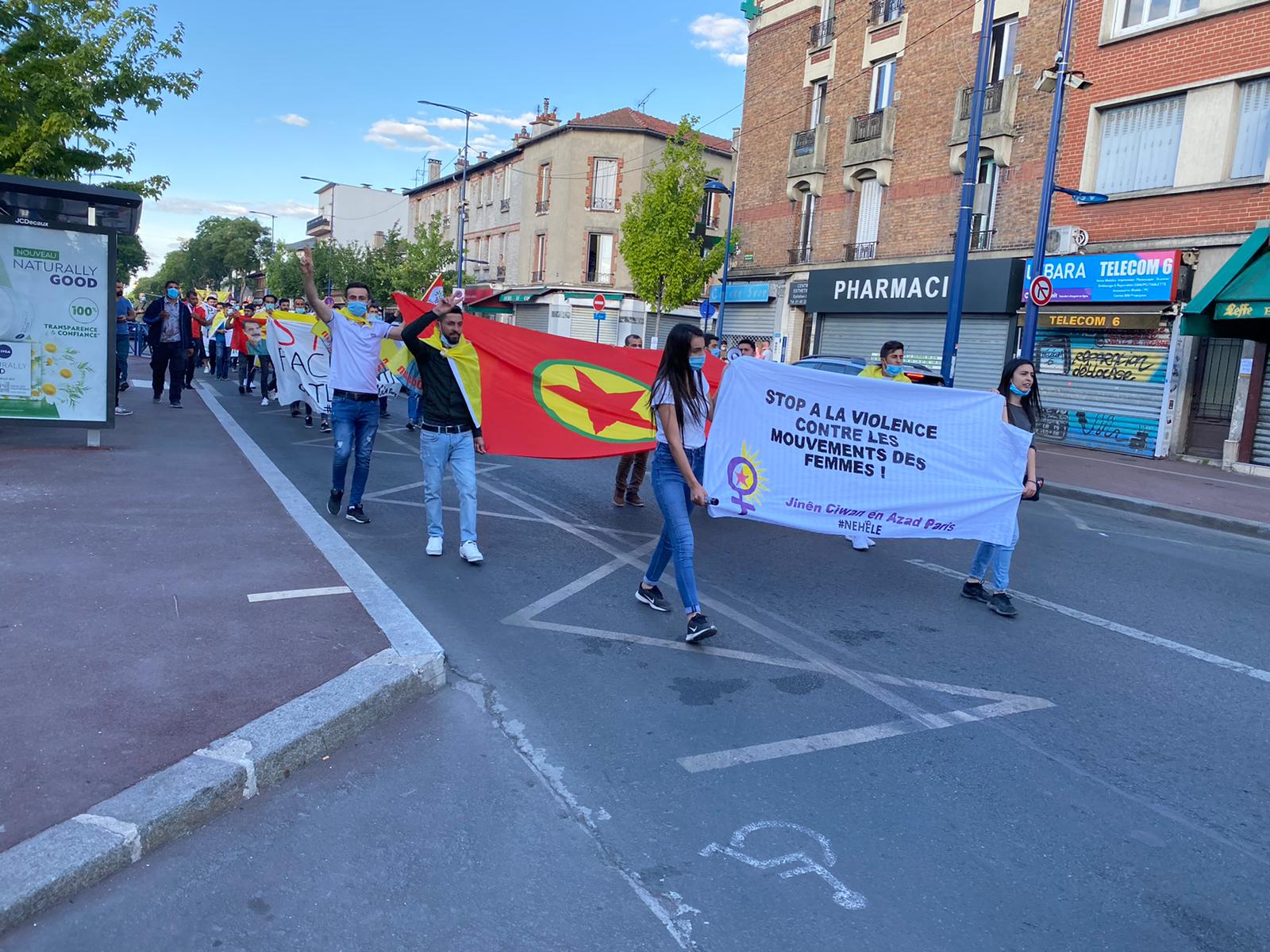 Saat 19’da Nehêle hamlesi kapsamında “Tecride ve faşizme izin verme” şiarıyla yapılan eyleme 100’e yakın genç katıldı. Halklar Önderi Abdullah Öcalan’ın posterleri ve PKK bayrakları ile yürüyüşe başlayan gençler, Fransızca ve Kürtçe “Bijî Serok APO”, “Öcalan’a Özgürlük” ve “Faşist Erdoğan” sloganlarını attı. En önde farklı dillerde dev bir “Öcalan’a Özgürlük yazan pankart açan gençler, Fransızca ve Kürtçe “Kadın hareketlerine karşı şiddete son” ve “Türk faşizmini durdur” yazılı pankartlar ile yürüdü. Yürüyüş sırasında havai fişek ve renkli duman da kullanan gençlere çevredeki halk da evlerinden alkışlarla destek verdi.