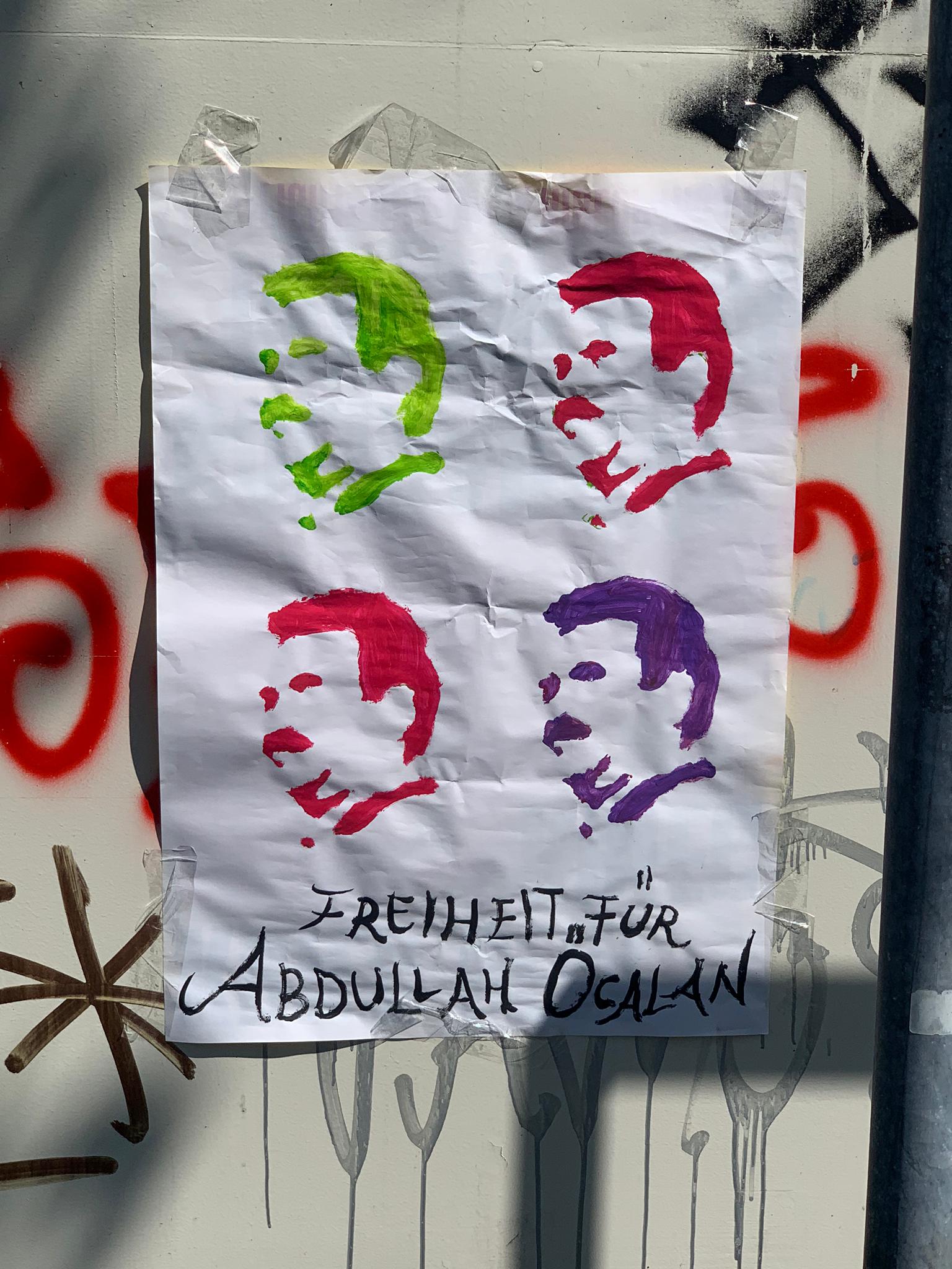 Gençler, Bern’de pankart eyleminin yanı sıra, şehir merkezinde çok sayıda noktaya da kendilerinin hazırladığı ve üzerinde Halklar Önderi Abdullah Öcalan’ın resimleri ve sözlerinin olduğu afişleri astı.