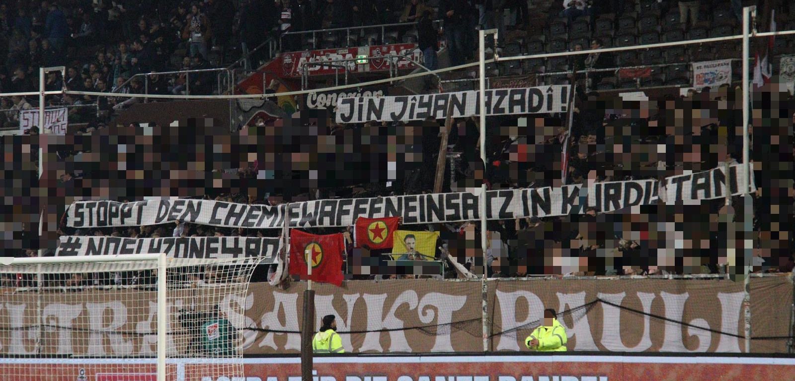 HAMBURG – Tevgera Ciwanên Şoreşger (TCŞ) ve Jinên Ciwan ên Têkoşer (TekoJIN) üyeleri, Almanya’da Hamburg’da gerçekleştirilen FC St. Pauli ve Holstein Kiel arasında oynanan futbol maçında kimyasal silah saldırılarını protesto etti.