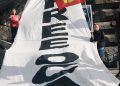 Aynı zamanda gençler hazırladıkları büyük TCŞ bayrağı ve Önder APO dövizleri ile eylemlerini daha da görkemli bir hale getirdiler.