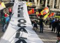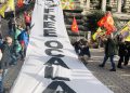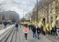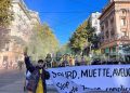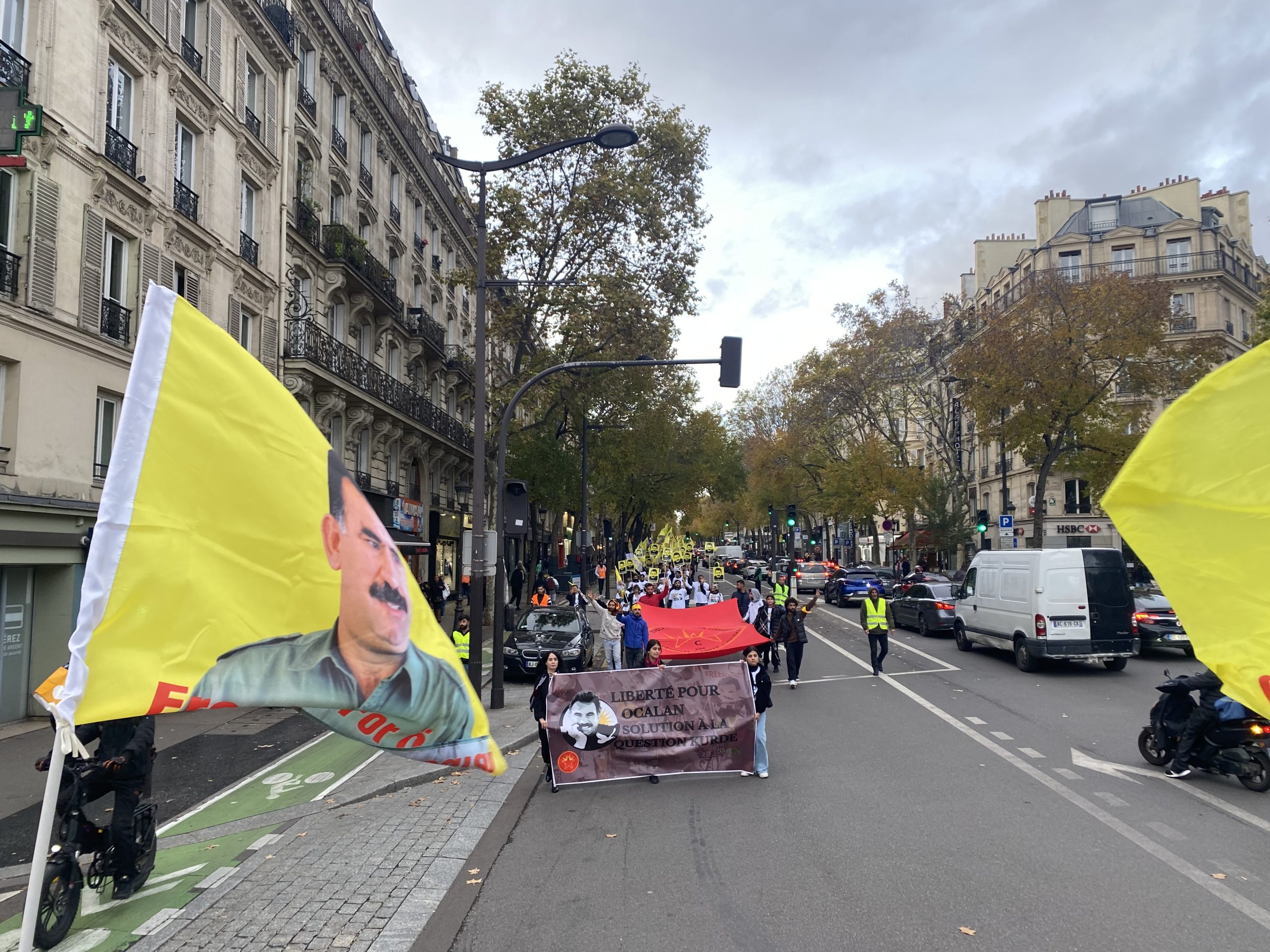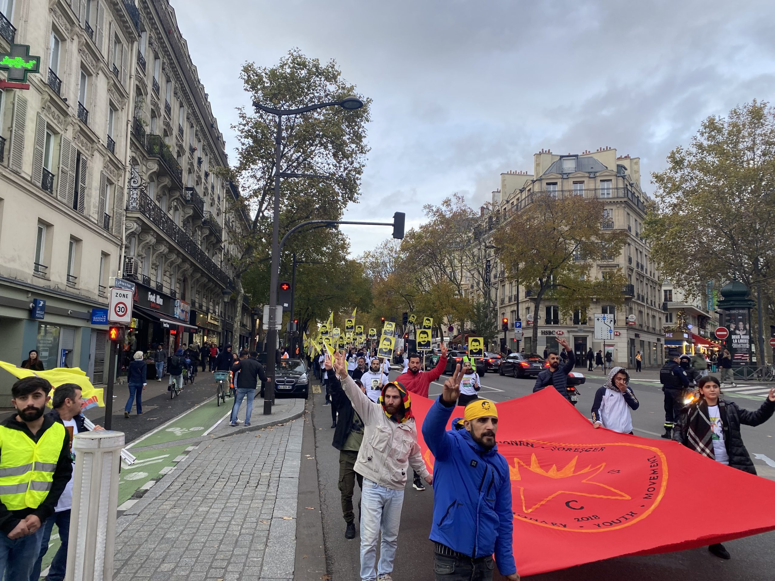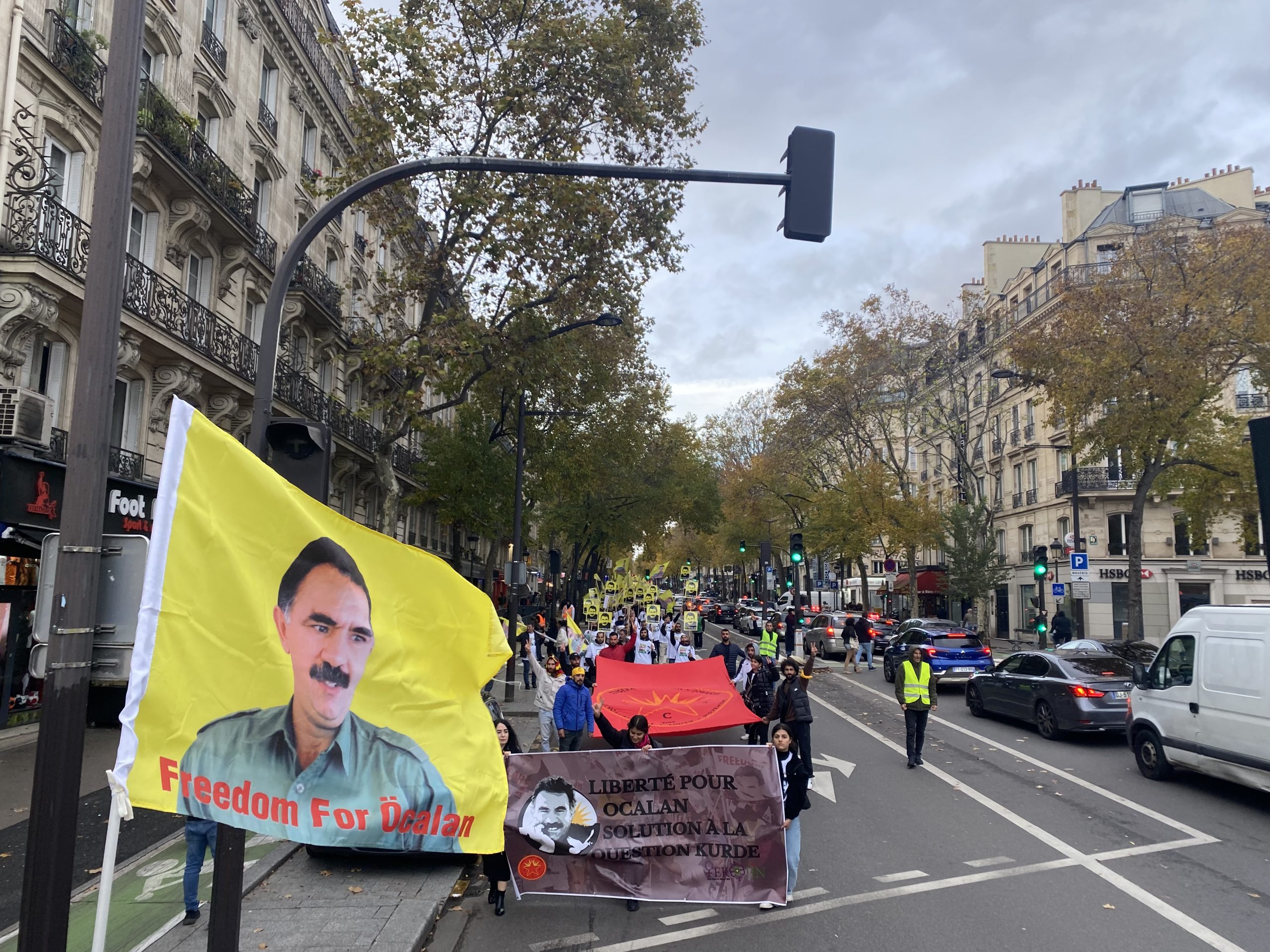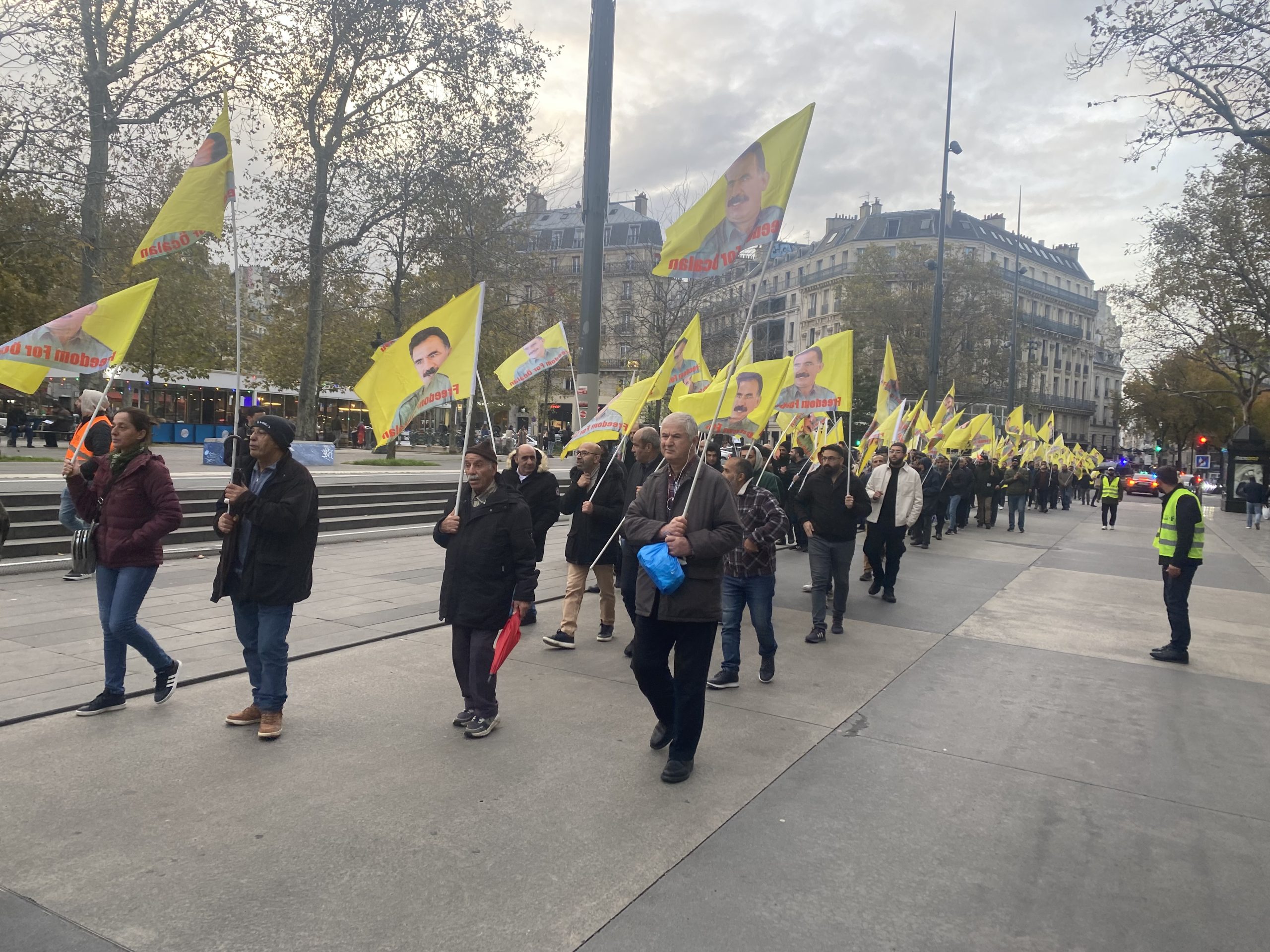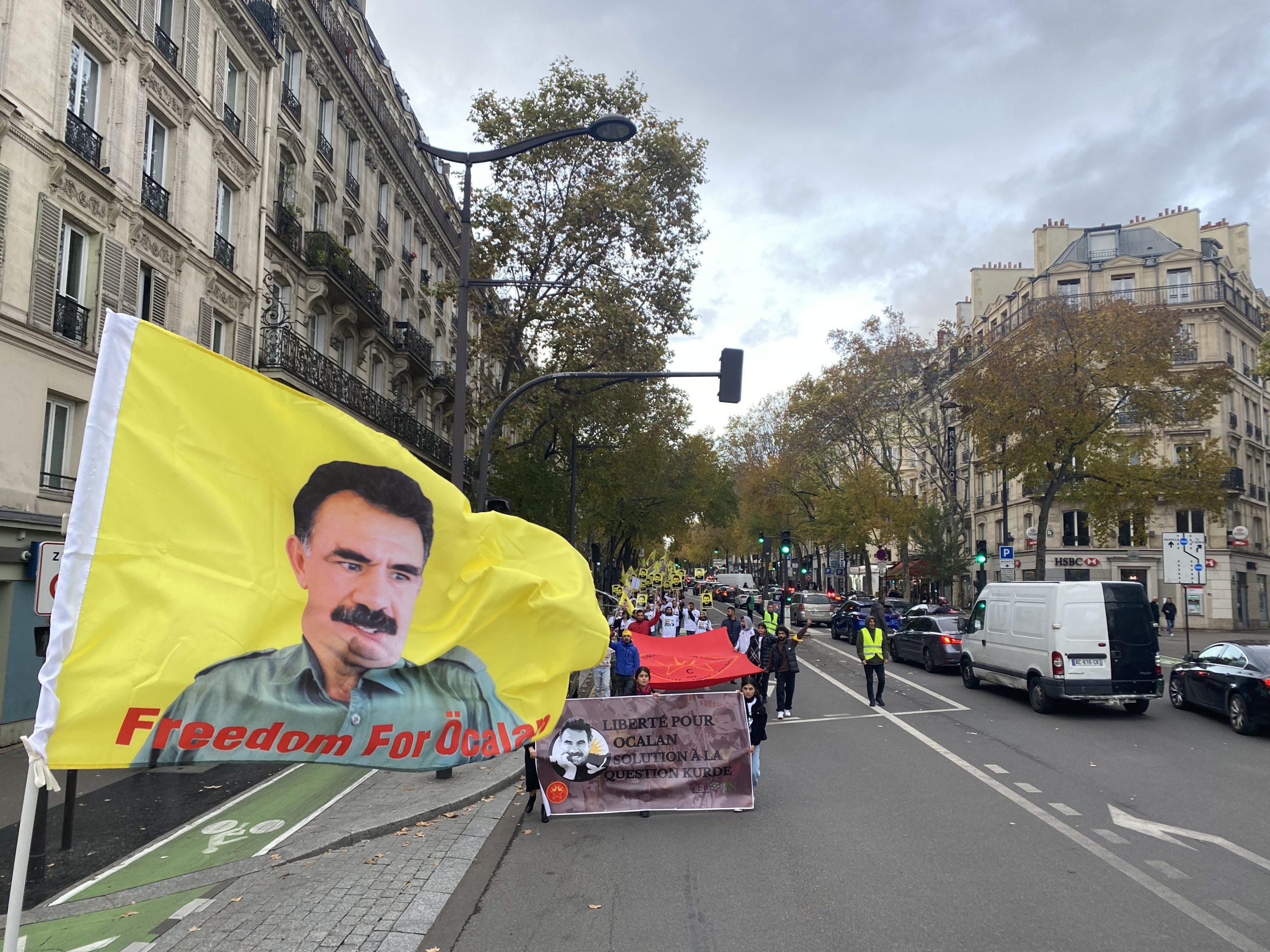 Gençler “Free Öcalan” (Öcalan’a Özgürlük) yazılı yaklaşık 15 metrelik pankart ve Önder APO, PKK bayrakları ile Place de Riponne meydanında eyleme başladılar.
