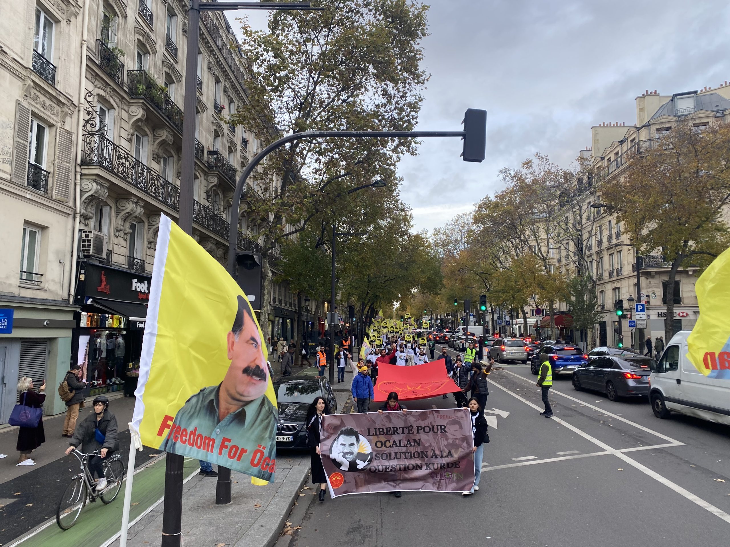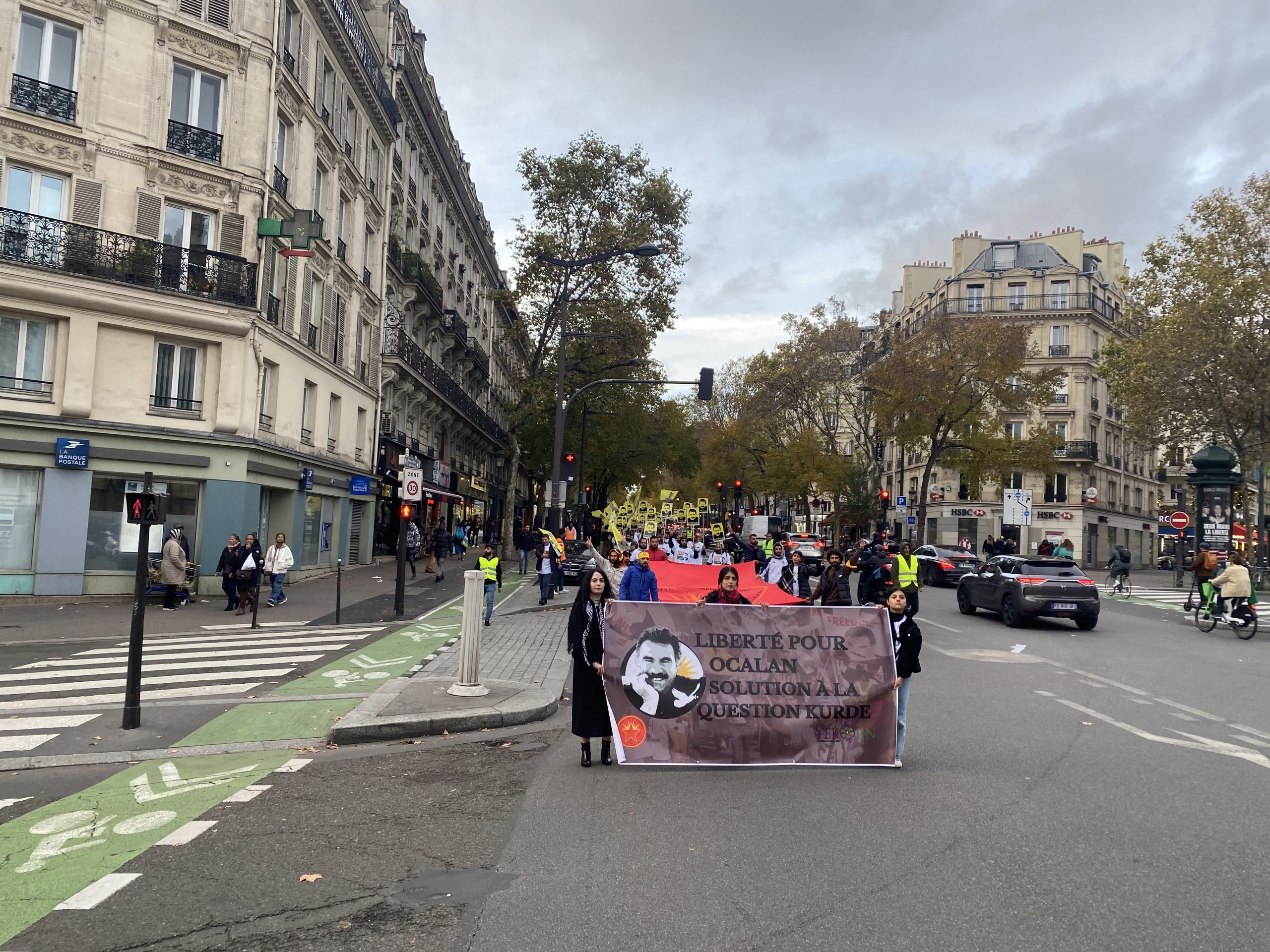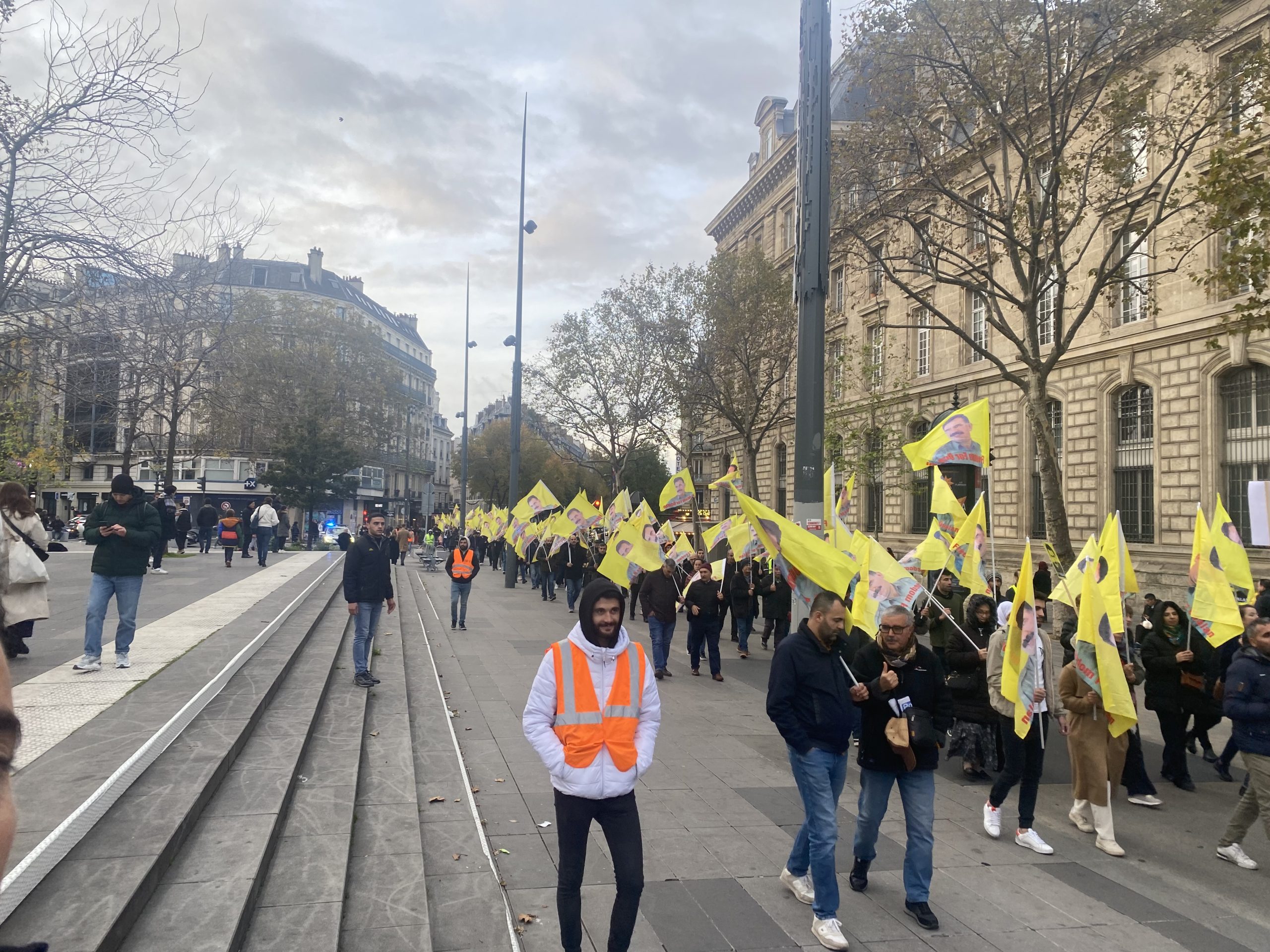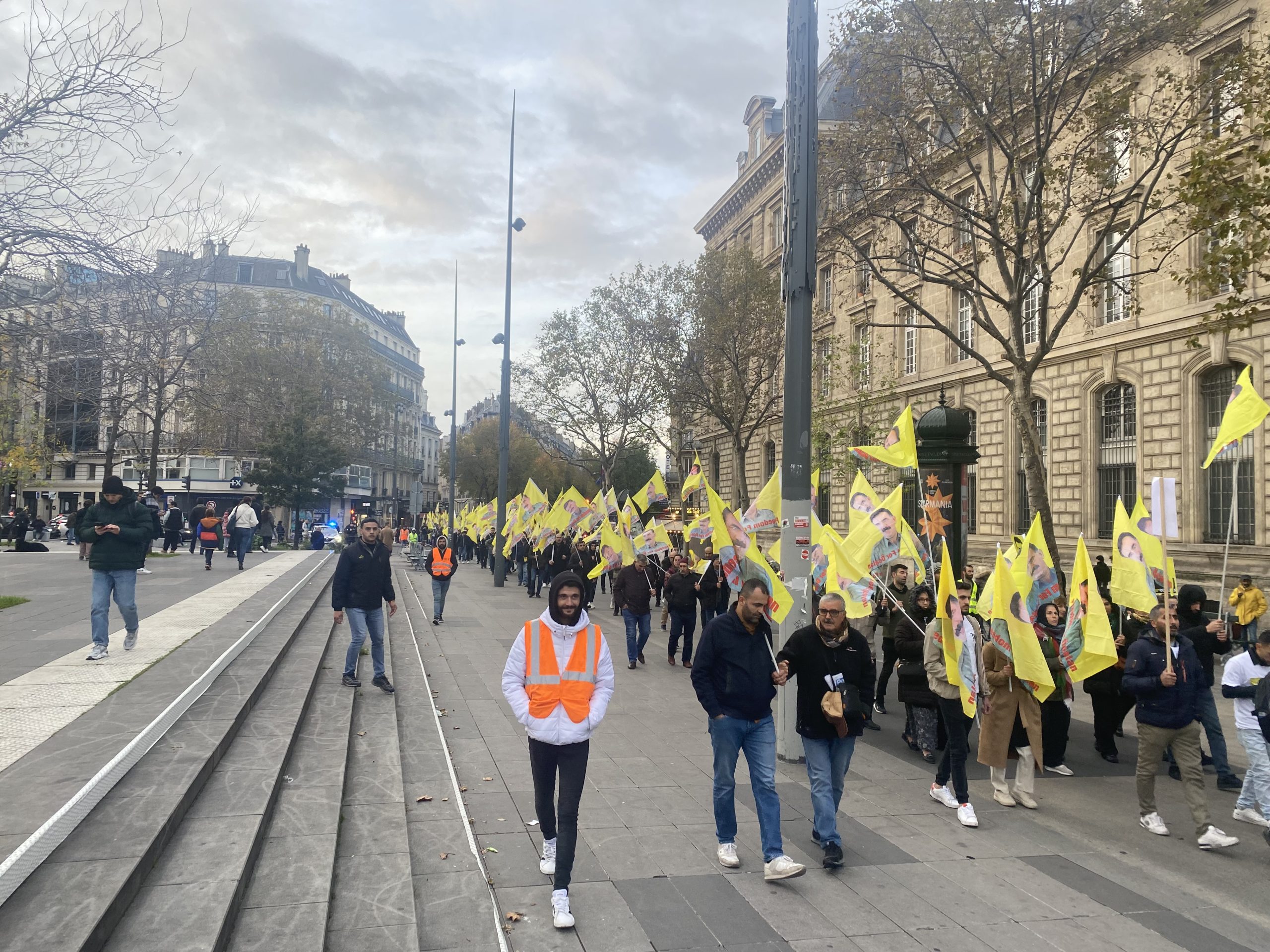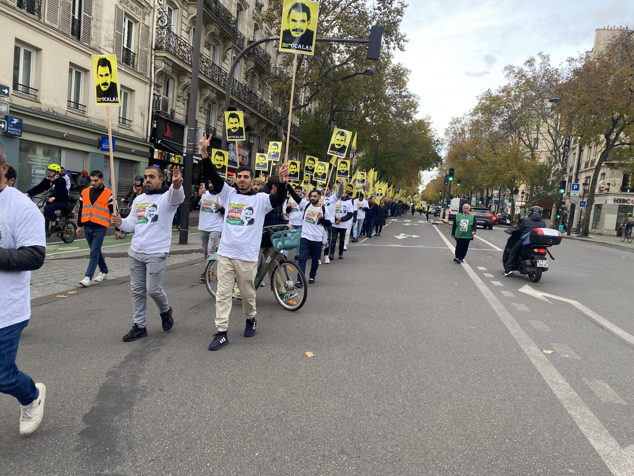 Gençler eylemleri için Gare Du Nord’da bir araya gelerek, Önder APO’nun silüeti ve fiziki özgürlüğünü talep eden slogan yazılı beyaz tişörtler giyip, yürüyüşe başladılar.