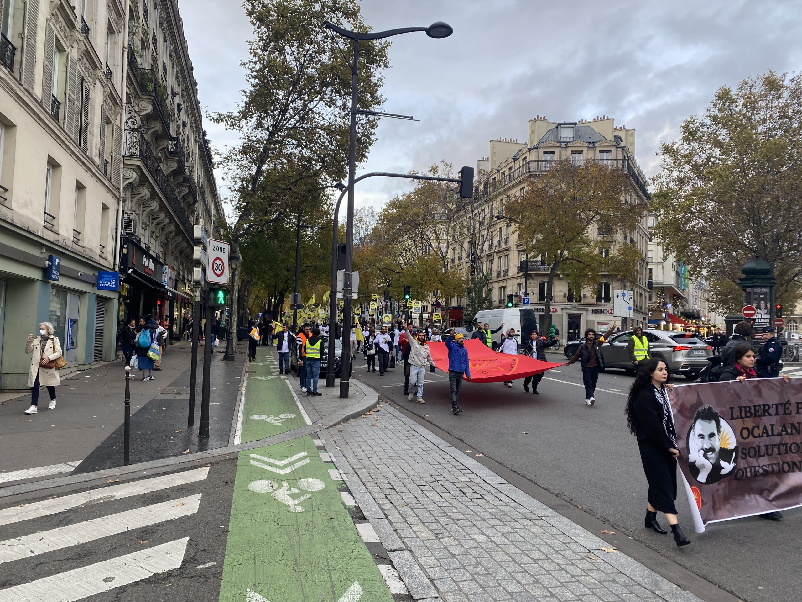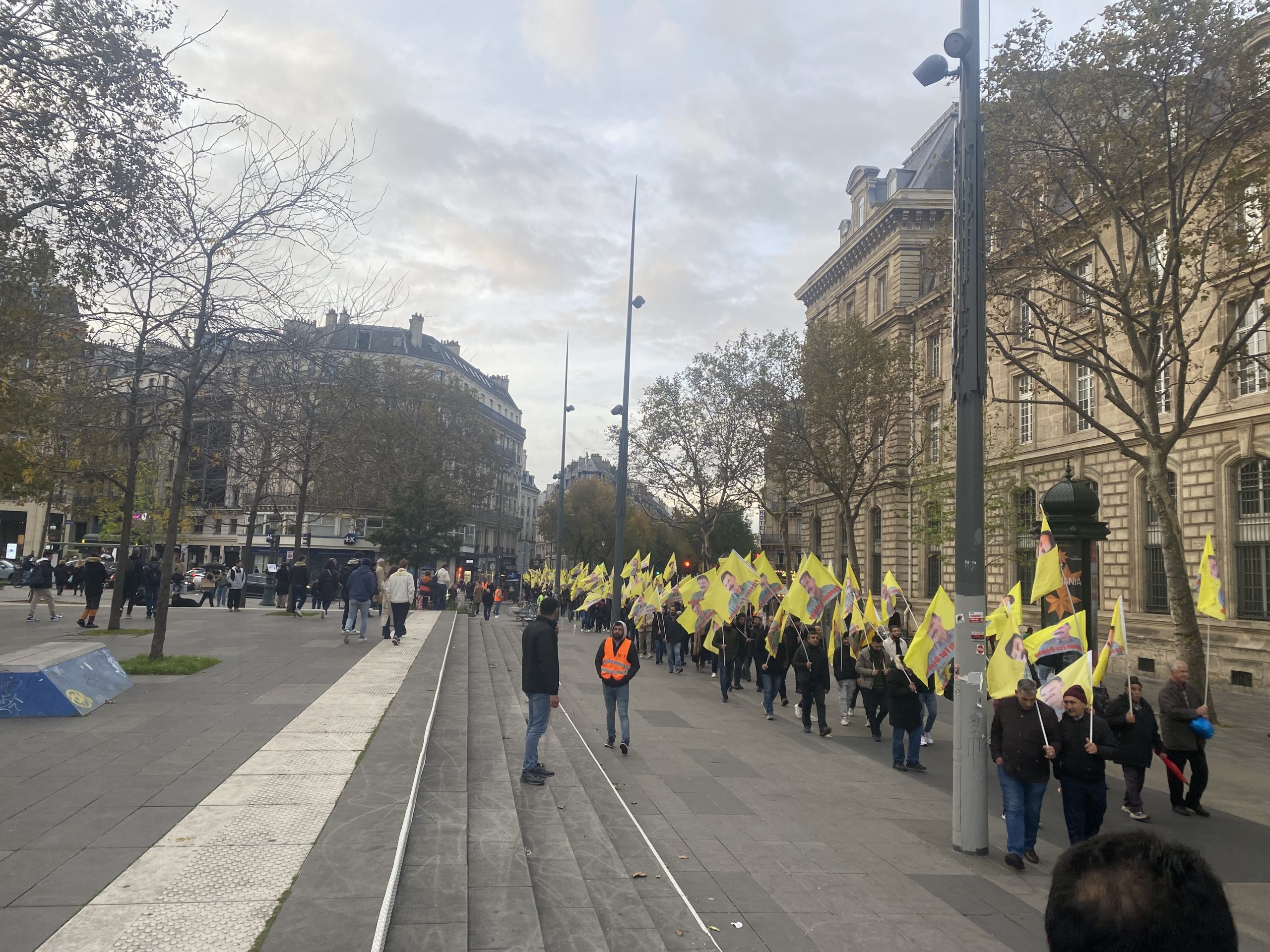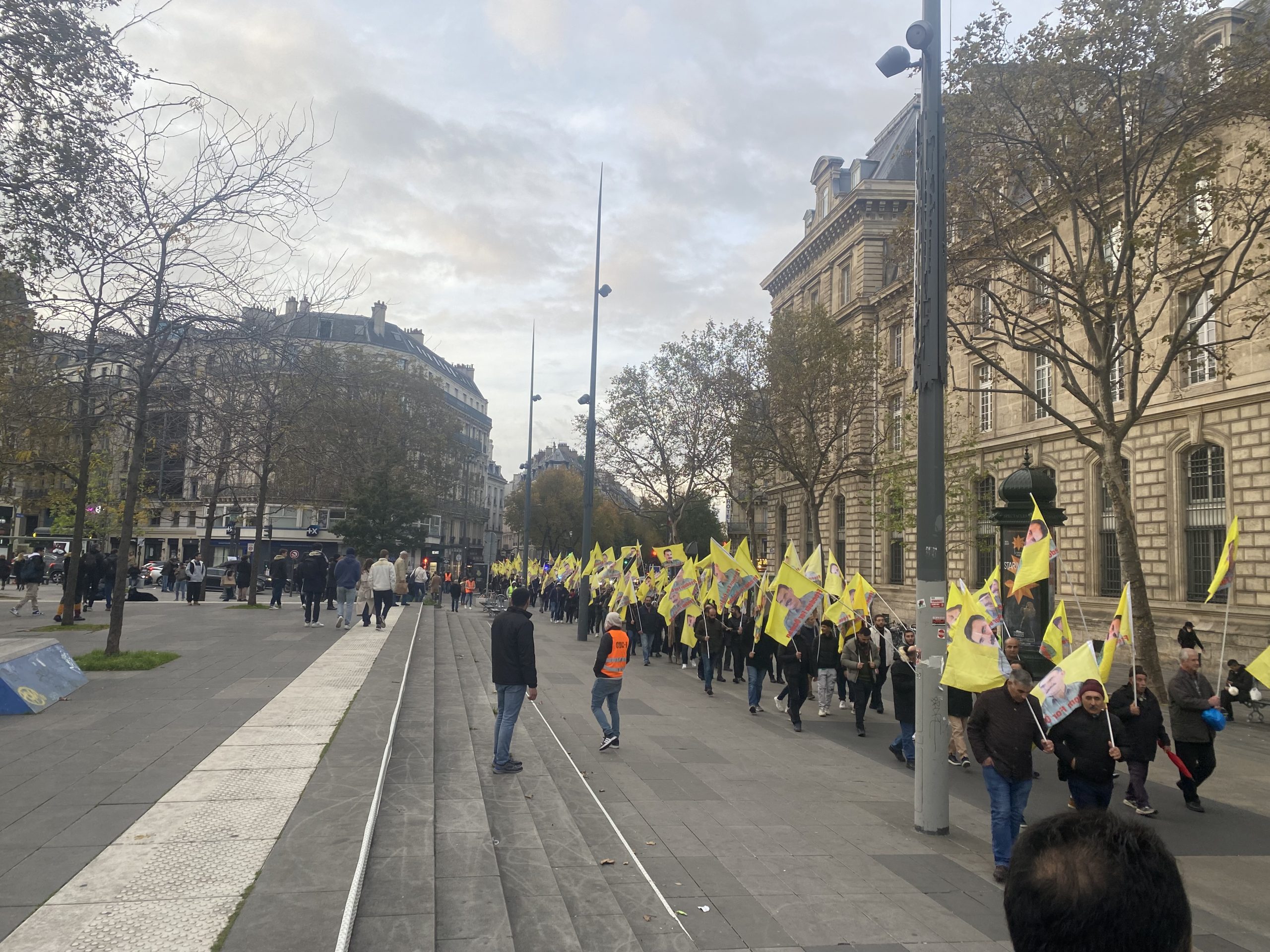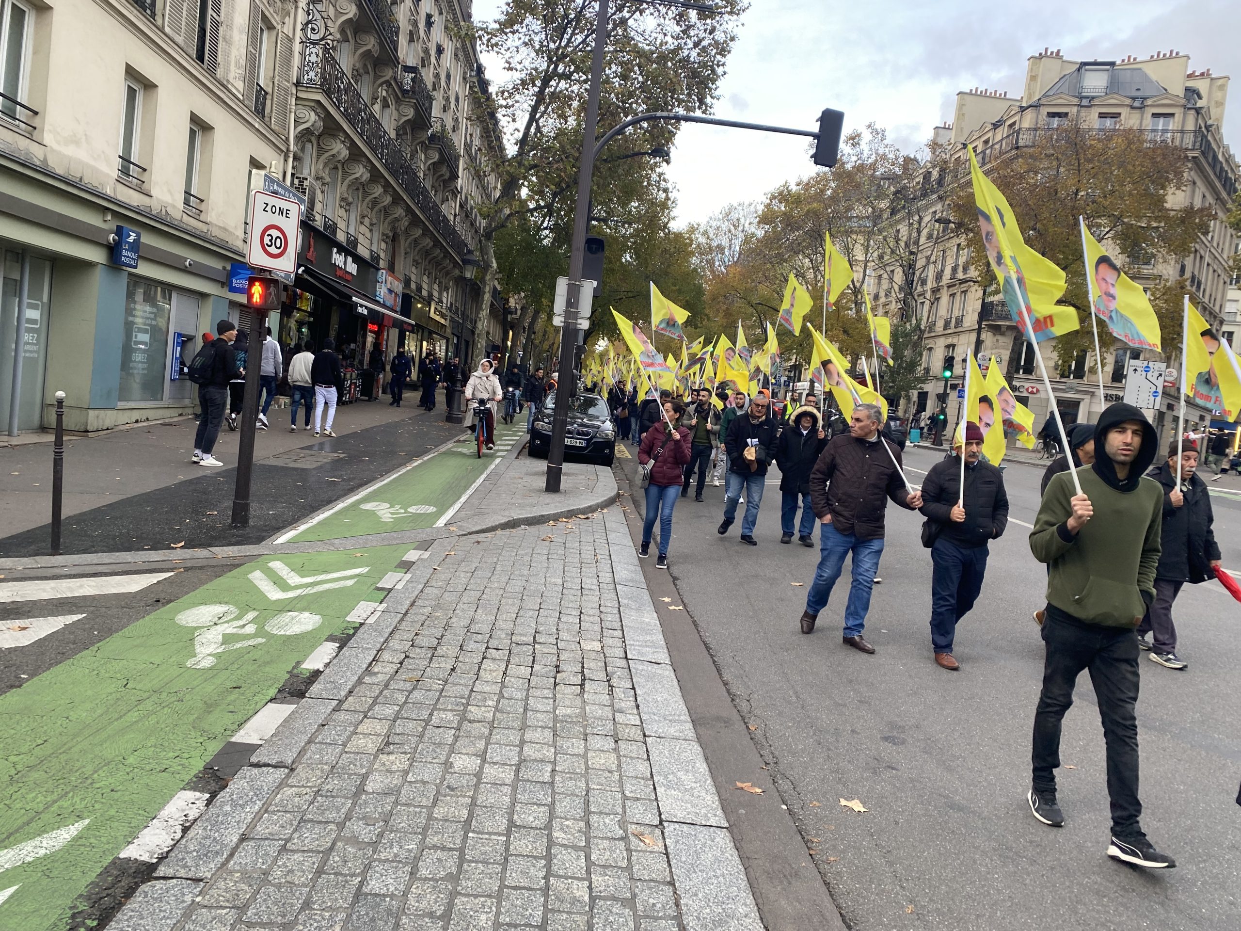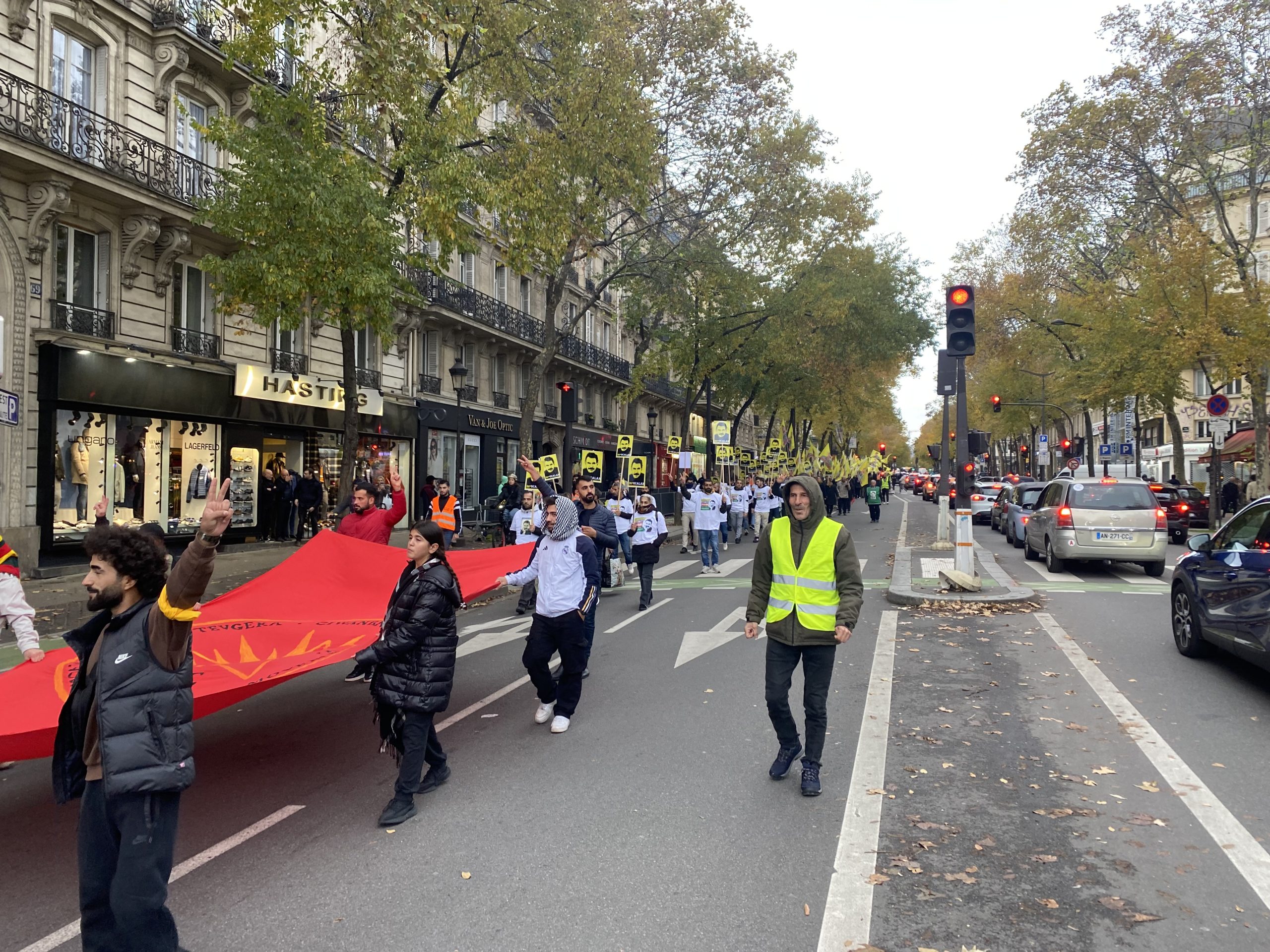 Gençler eylemleri için Gare Du Nord’da bir araya gelerek, Önder APO’nun silüeti ve fiziki özgürlüğünü talep eden slogan yazılı beyaz tişörtler giyip, yürüyüşe başladılar.