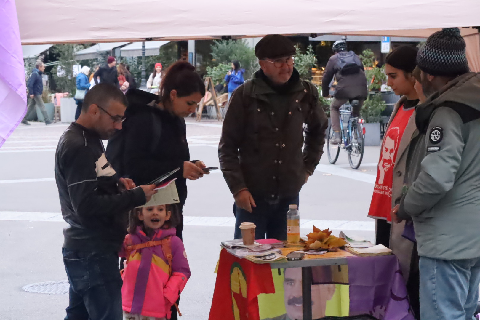 TCŞ (Tevgera Ciwanên Şoreşger) adına konuşan Lorîn Amed ” Önder APO sadece Kürt halkı için değil, bütün halklar için bir umut olmuş durumda, bundan dolayı bugün burada Önder APO’nun fikirlerini ve gelişen komplo sürecini daha çok insana ulaştırmak için standımızı açtık” dedi.