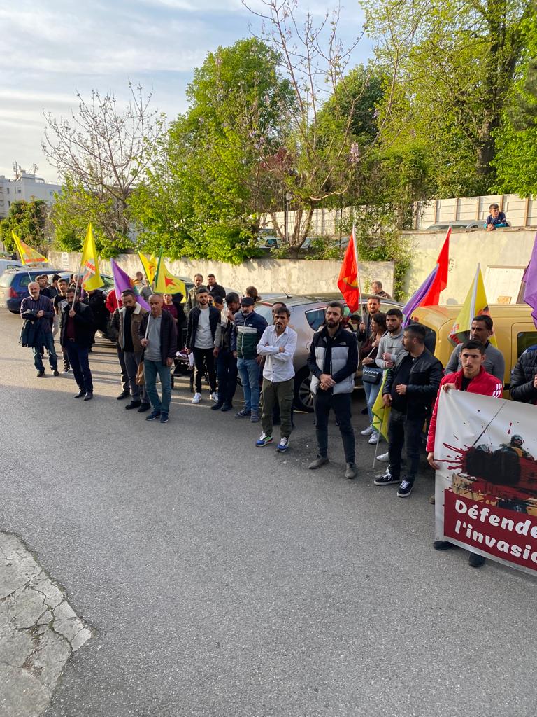 Yürüyüş boyunca sloganlarla gerilla alanlarındaki direnişi selamlandı. Ayrıca yürüyüşte Önder APO ve PKK flamalarının yanında saldırıları lanetleyen pankartlarda taşındı. Yürüyüşten sonra gençler Kürdistan şehitleri anısına bir dakikalık saygı duruşunda bulundu.
