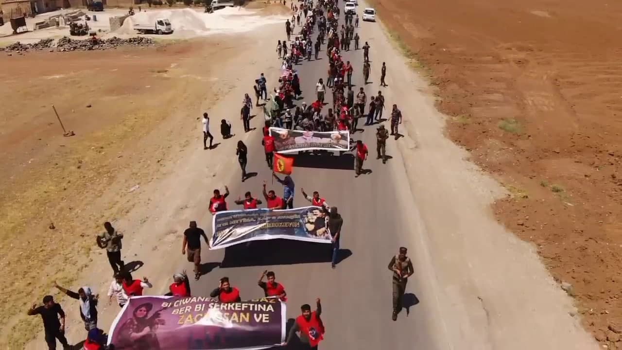 QAMIŞLO – İşgalci Türk devletine karşı gerilla direnişini desteklemek ve Zap, Avaşîn ve Metîna bölgelerine yönelik işgalci Türk devleti tarafından başlatılan işgal saldırılarını kınamak amacıyla Tevgera Ciwanên Şoreşger ve Yekîtiya Jinên Ciwan “Bi Ciwanên Bûne Baz, Ber Bi Serkeftina Zagrosan ve” sloganıyla, Qamışlo’dan Dêrîk’e üç gün sürecek uzun yürüyüş başlattı.
