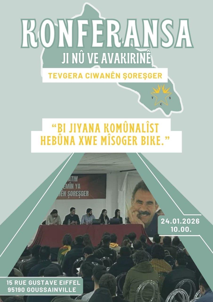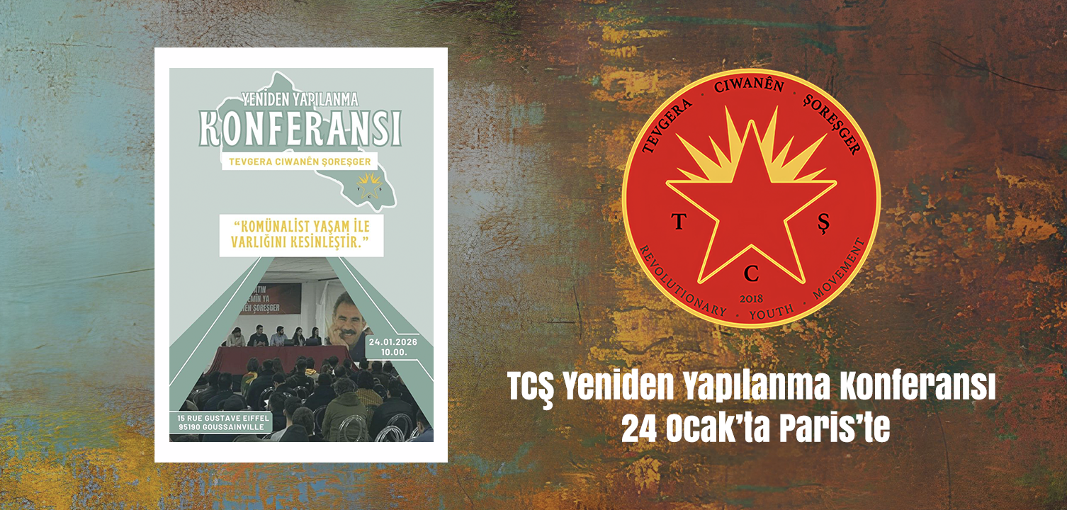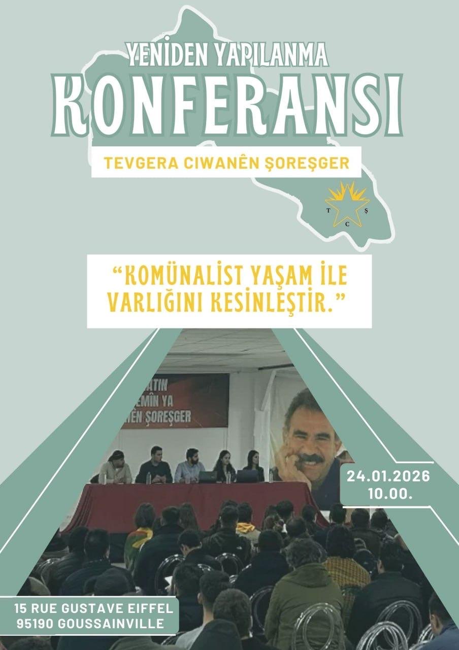 PARİS – Avrupa’da yaşayan Kürdistanlı gençlerin çatı örgütlenmesi olan Tevgera Ciwanên Şoreşger (TCŞ), 24 Ocak 2026’da “Yeniden Yapılanma Konferansı” gerçekleştireceğini duyurdu.