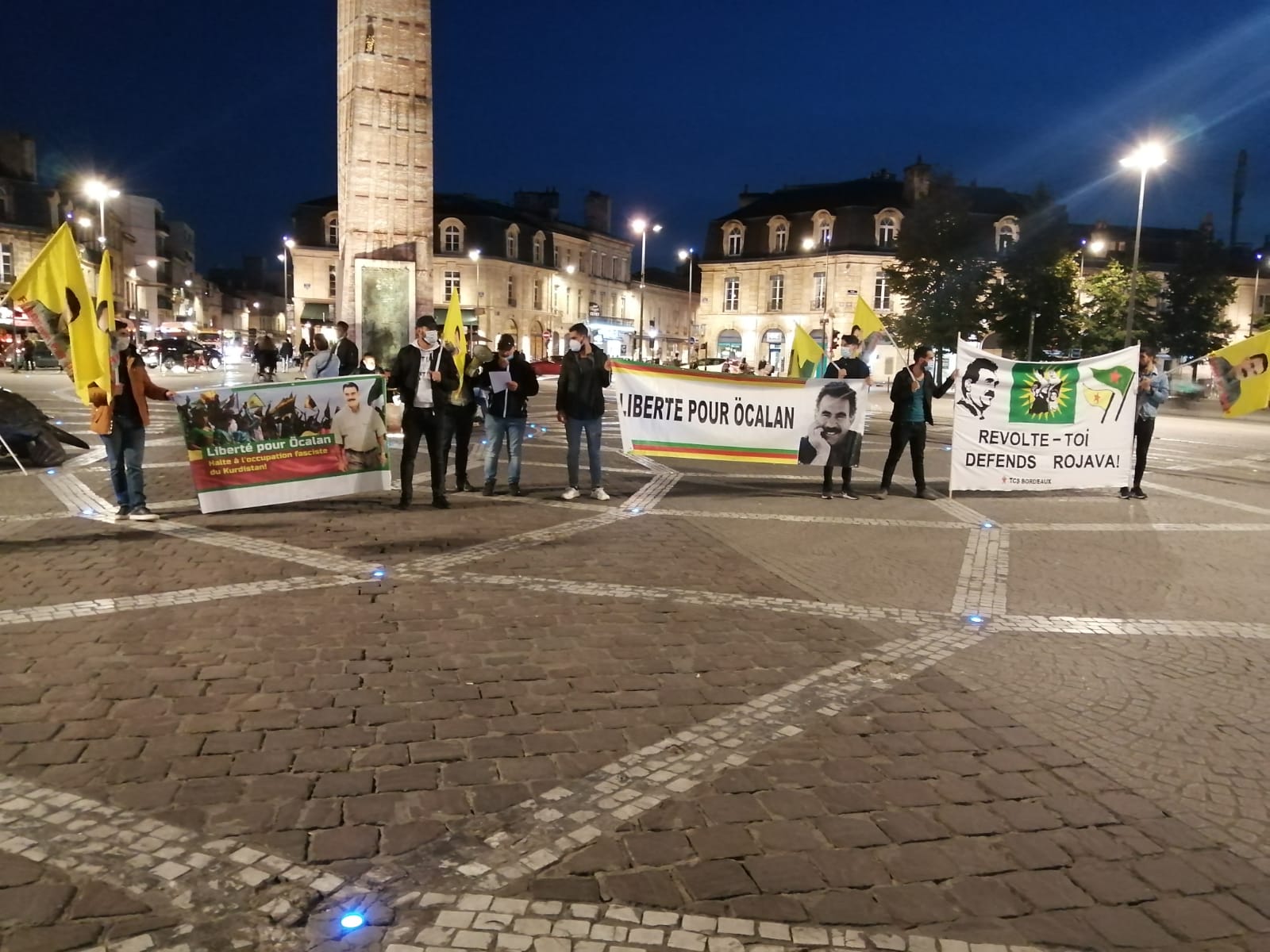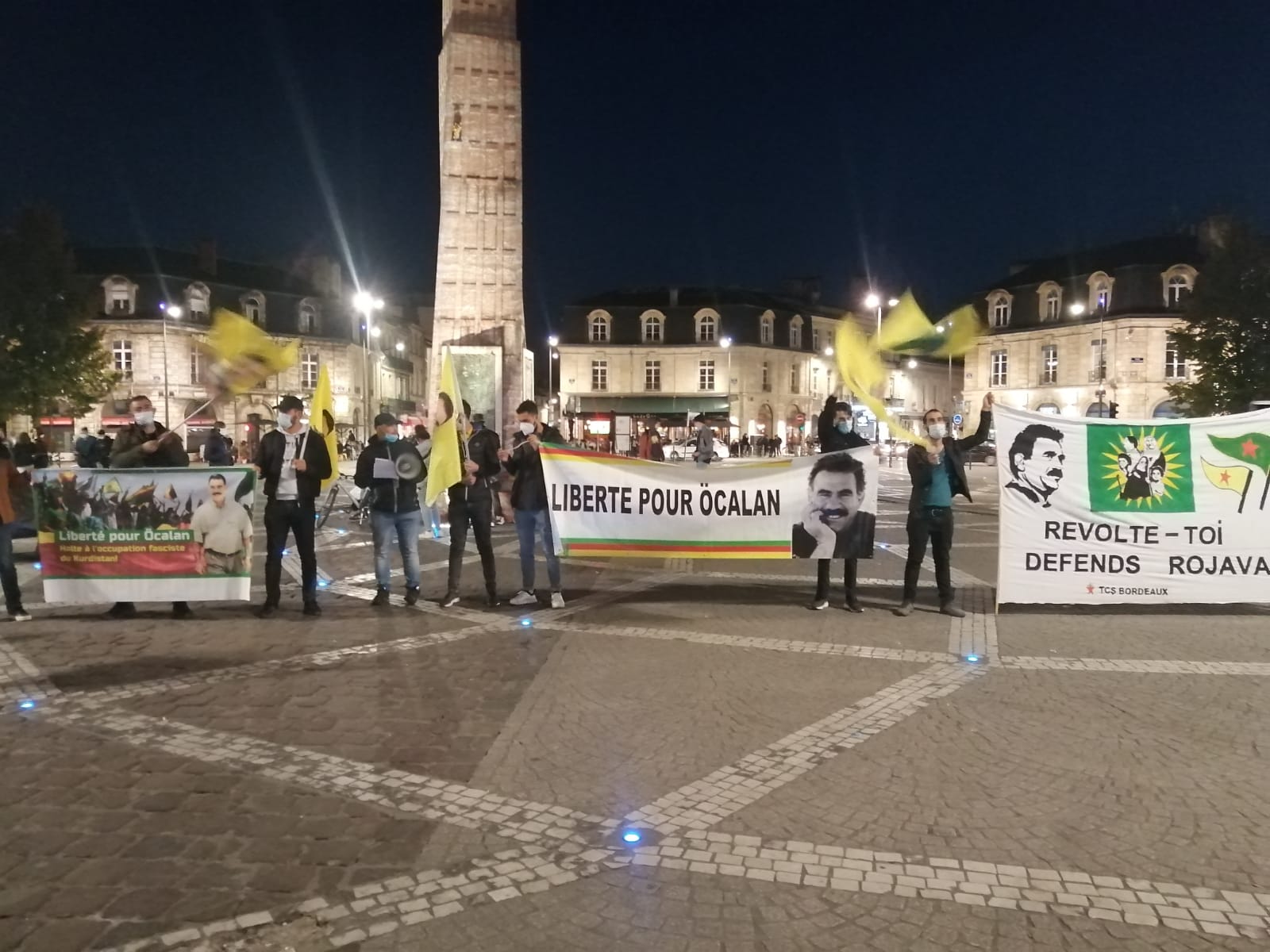 17 Ekim günü saat 19’da Fransa’nın Bordeaux kentinde Victorie meydanında bir araya gelen gençler, burada bir eylem gerçekleştirdi. “Tecride, Faşizme, İşgale Son: Bi Hev Re Serhildan” şiarıyla düzenlenen eylemde gençler, Türk devletinin Önder Öcalan’a yönelik ağırlaştırılmış tecrit ve sistematik işkence politikası ve Kürdistan’daki soykırım politikasını teşhir eden Fransızca bir açıklama okudu.
