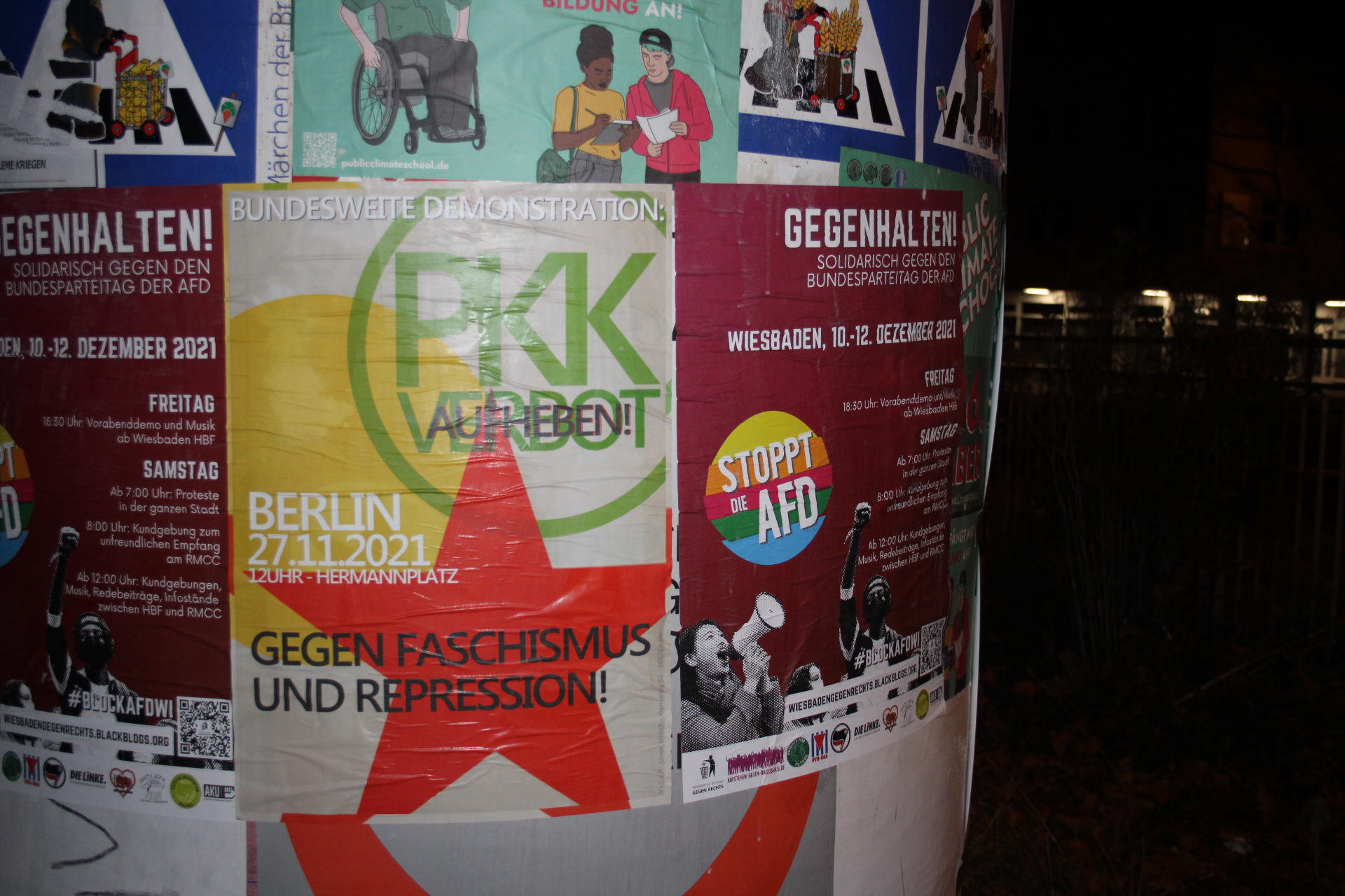 KASSEL – Akşam saatlerinde TCŞ (Tevgera Ciwanên Şoreşger) aktivistleri ve enternasyonalist gençlerin yaptığı çağrı ile bir araya gelen gençler şehir merkezinde PKK yasağına karşı afişleme ve Berlin’de “Werin Cenga Azadiyê” hamlesi kapsamındsa gerçekleşecek olan yürüyüşe ilişkin çağrıda bulundu.