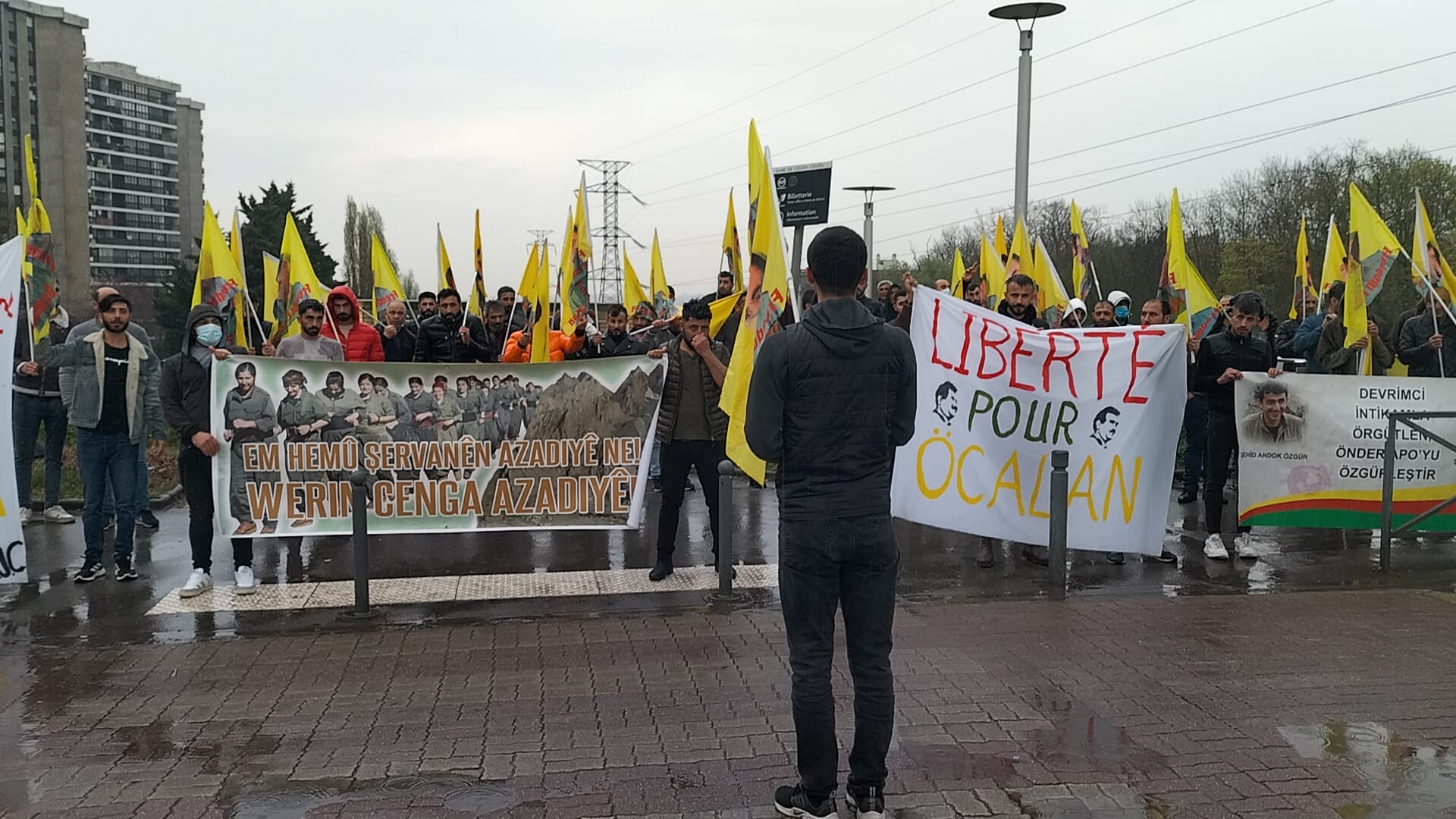 Gençler yürüyüş boyunca, “Bijî Serok APO” , “Bê Serok Jîyan Nabe” ve “Liberte Pour Öcalan” sloganlarını attı.