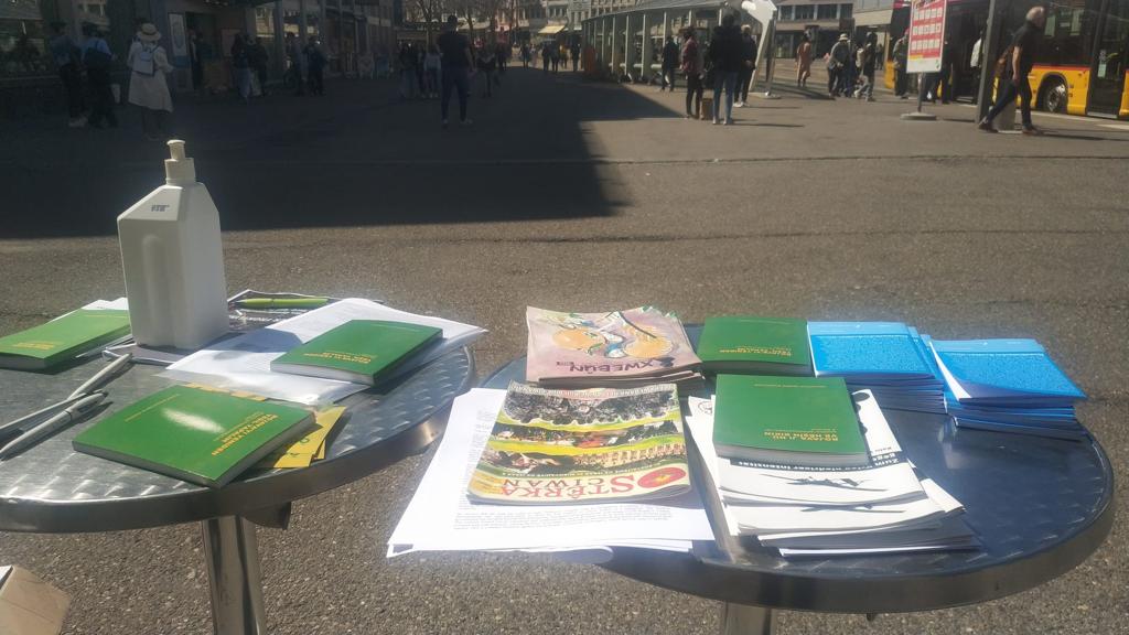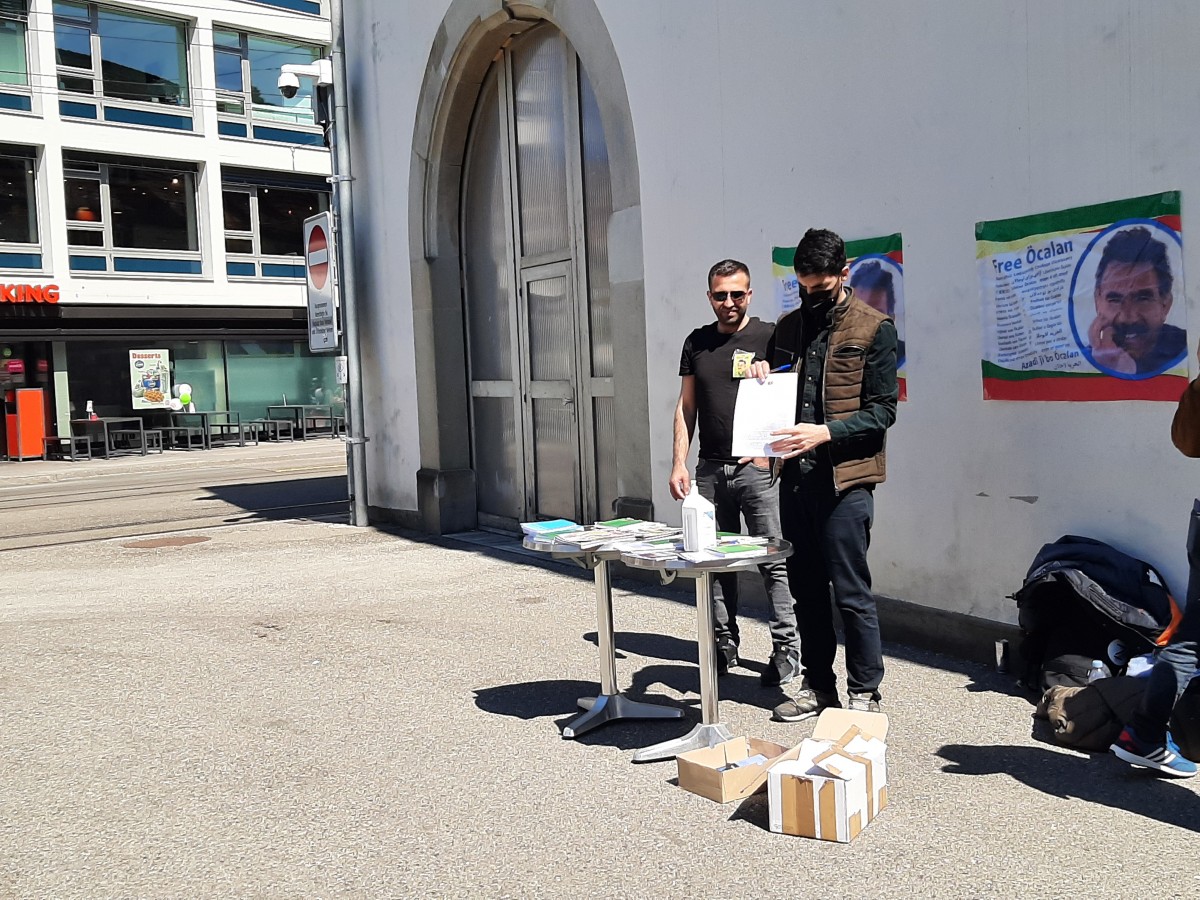 St.Gallen Marktplatz alanında saat 11’de başlayan çalışmada Önder Öcalan’ın farklı dillere çevrilmiş kitapları, tecrit ve Önder Öcalan’ın halklar açısından öneminin belirtildiği bildiriler çevredeki insanlara dağıtıldı. BM’ye gönderilmek üzere düzenlenen imza kampanyası kapsamında imza da toplanan çalışma, meydandaki halktan ilgi gördü.