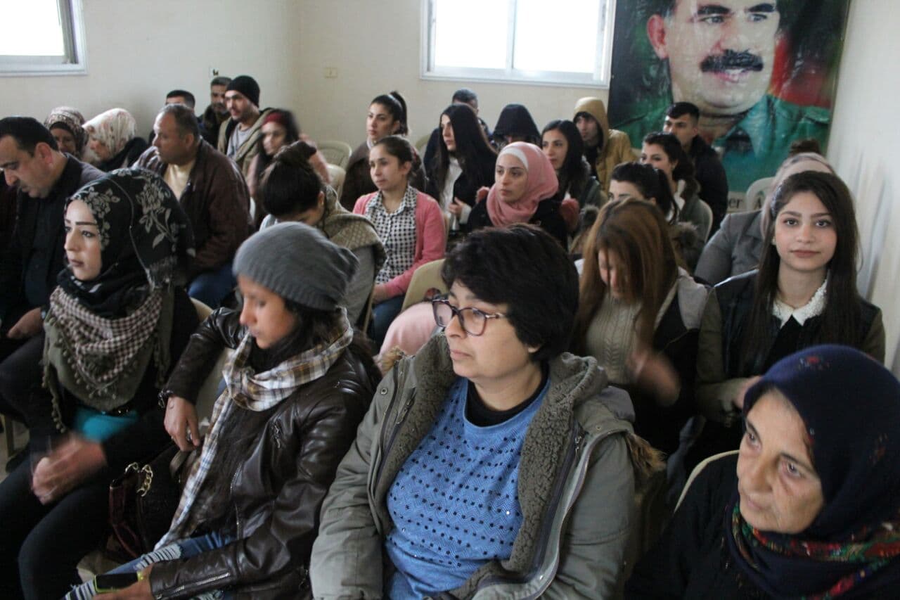 Başlangıçta devrim şehitleri anısına bir dakikalık saygı duruşunda bulunuldu ardından Mamo Sağlık Meclisi adına Dr. Neşat Rêbaz, Tevgera Ciwanên Şoreşger adına ise Şikrî Efrîn konuşma yaptı.
