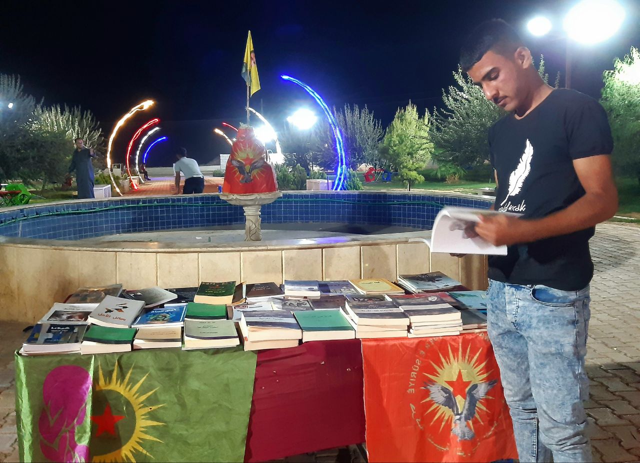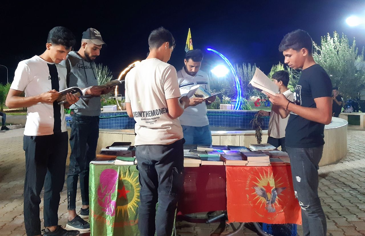 Etkinliğin sonunda onlarca genç bir araya gelerek, Tabqa Devrimci Gençlik Hareketi eşsözcüsü tarafından okunan Önder APO’nun İmralı’daki hayatını anlatan broşürler ve gençlere büyük önem veren fikirlerine dönük materyalleri dinledi.