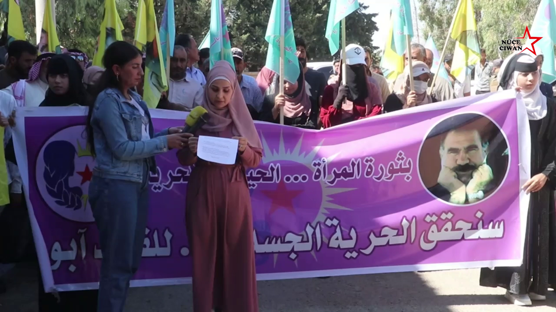 TEBQA- Tebqa Kantonu Gençlik ve Spor Meclisi Kadın Ofisi, Önder APO’ya yönelik uluslararası komployu kınamak amacıyla Cirni kentinde yürüyüş düzenledi.