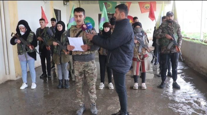 Tevgera Ciwanên Şoreşger ve Yekitiya Jinên Ciwan üyelerinden silah alan onlarca kişi açıklamaya katıldı.
