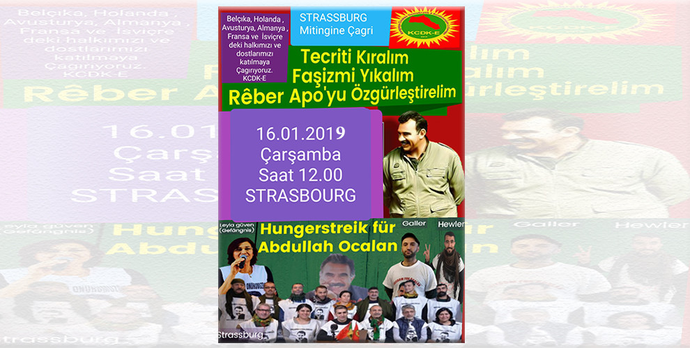 KCDK-E ve TJK-E olarak tüm onurlu ve vicdan sahibi insanları, kadınları, gençleri, tüm halkları, faşizme karşı olan herkesi, devrimcileri, demokratları, aydınları ve dostları ‘Strasburg Açlık Grevcileri’nin de katılacağı 16 Ocak’ta Avrupa Konseyi-Parlamentosu, CPT önünde gerçekleştirilecek etkinliğe katılmaya çağırıyoruz” demişti.