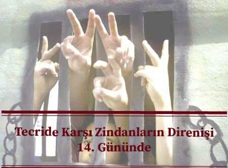 Halklar Önderi Abdullah Öcalan üzerindeki tecridin kaldırılması ve cezaevlerinde ihlallerin son bulması için tutsakların başladığı açlık grevi eylemi, 3’üncü grup tarafından 14’üncü gününde devam ediyor.