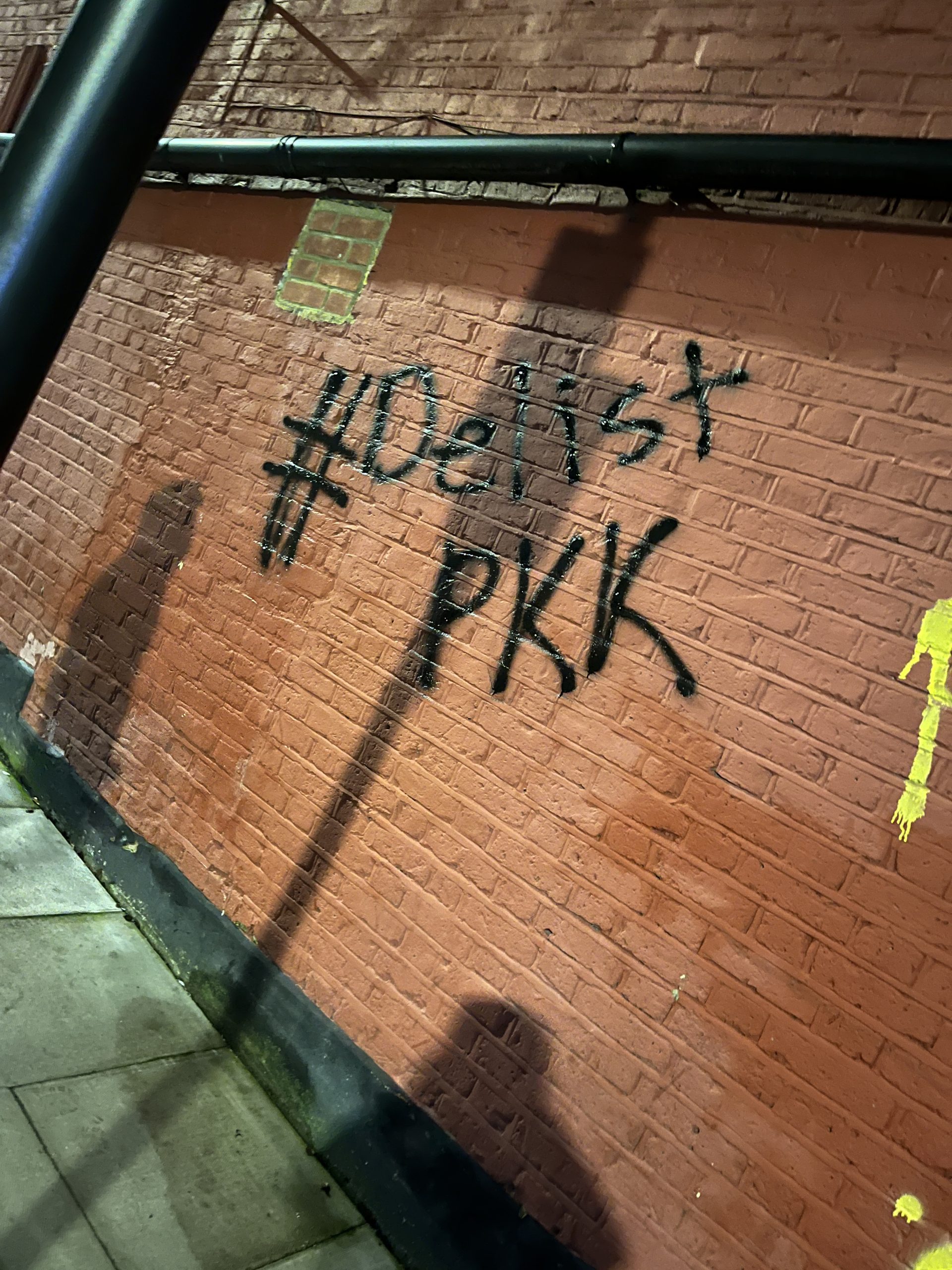 Şehrin en işlek meydanlarında duvarlara “PKK”, “Bijî Serok APO” ve “Bijî Berxwedana Gerîla” yazıldı. Halk tarafından ilgi gören eylemde gençler tarafından eylemin amacı açıklandı.