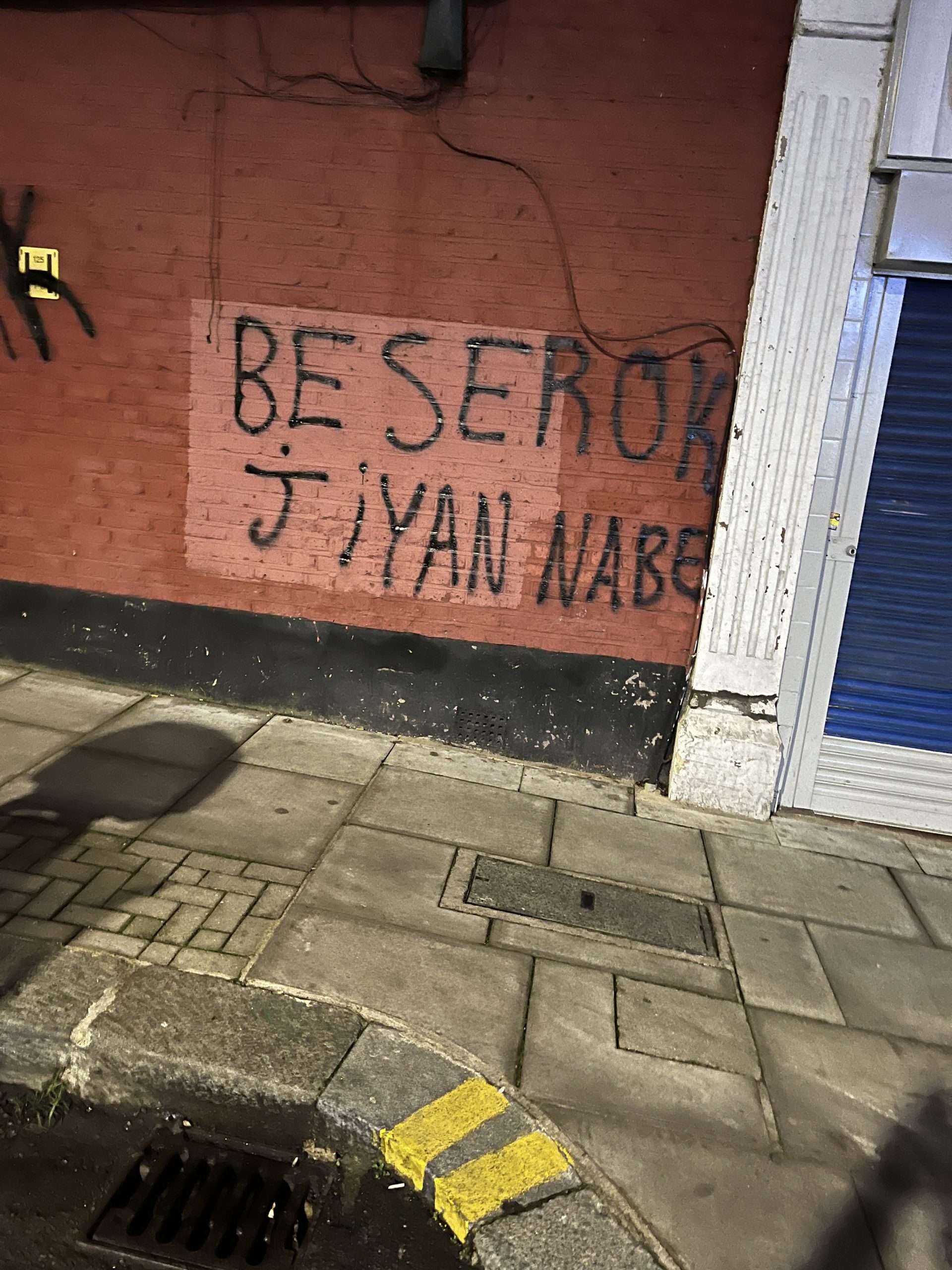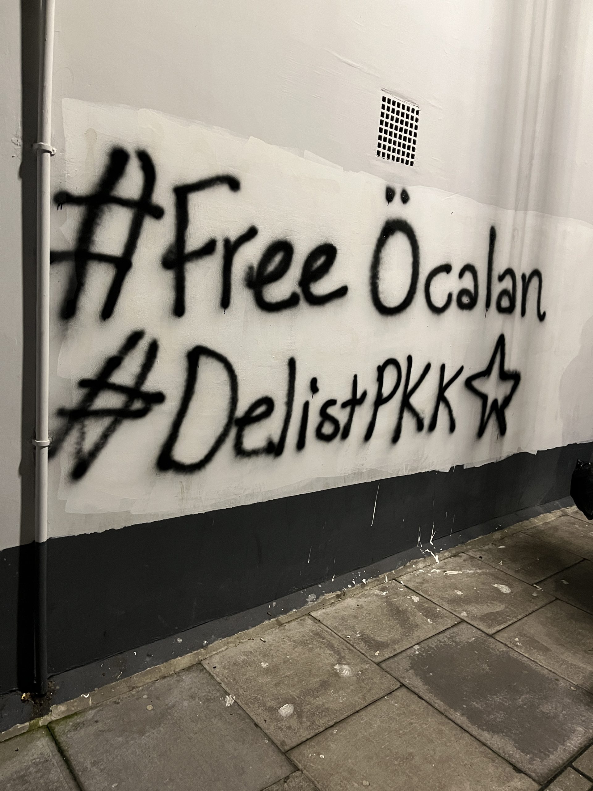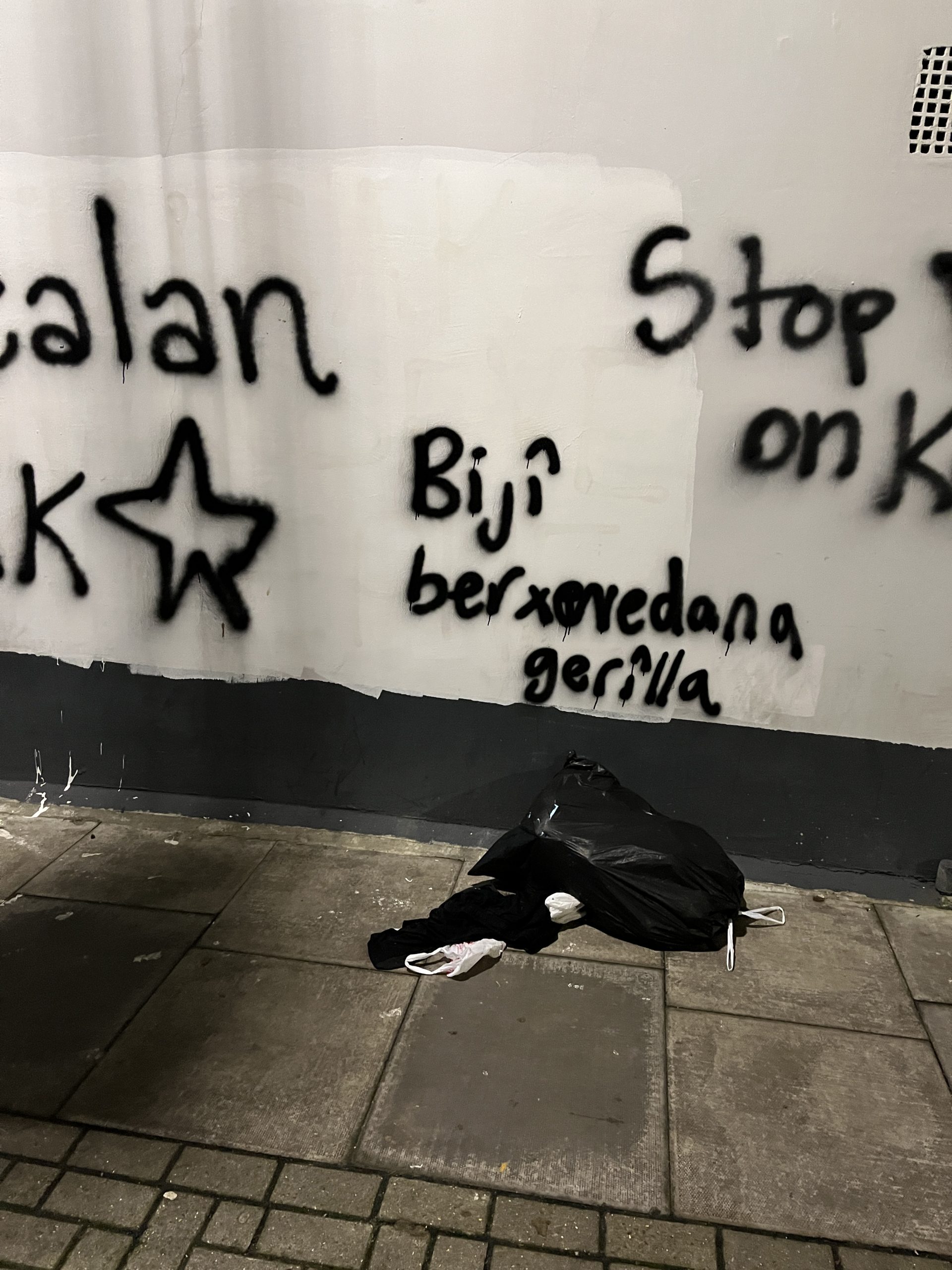 LONDRA – TCŞ (Tevgera Ciwanên Şoreşger) aktivisti gençler akşam saatlerinde Londra’nın Waterloo bölgesinde Önder Öcalan’ın fiziki özgürlüğü için ve Medya Savunma Alanları’na yönelik kullanılan kimyasal silah saldırılarını protesto etmek için yazılama eylemi gerçekleştirdi.