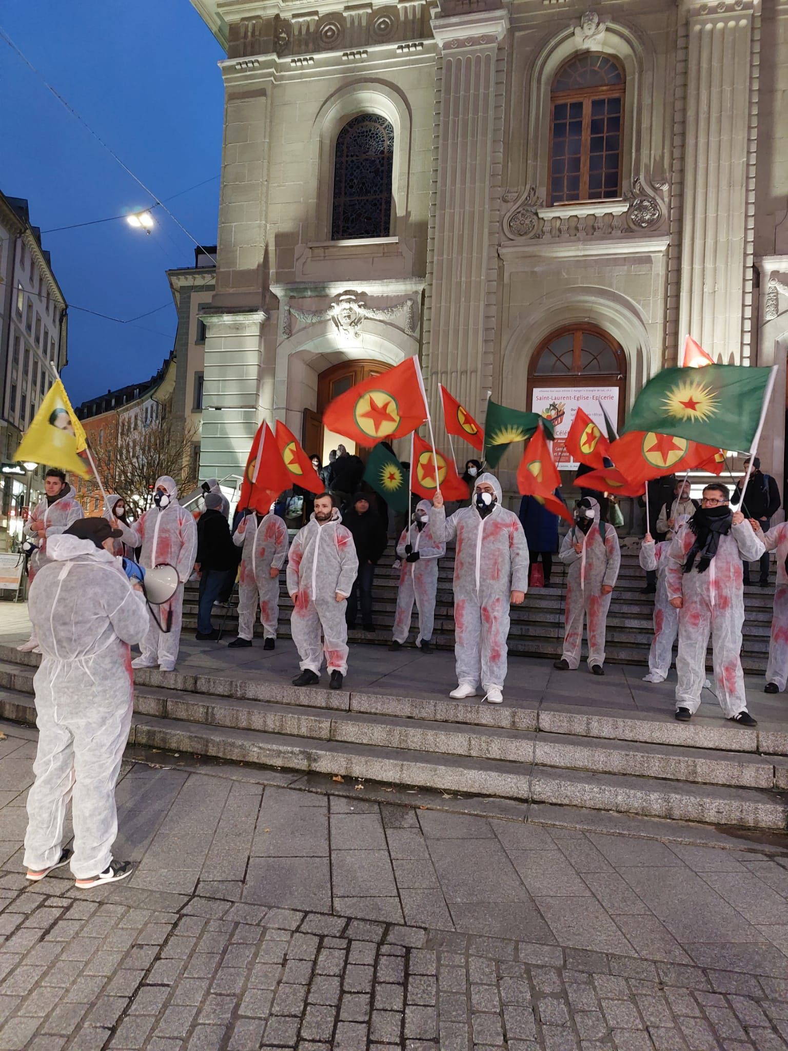 LOZAN– Akşam saat 17.00’da St. Laurent Kilisesi önünde TCŞ (Tevgera Ciwanên Şoreşger) ve TekoJIN (Jinen Ciwan ên Têkoşer) aktivistlerinin yaptığı eylem çağrısıyla yurtsever halkın katılımı ile faşist TC zihniyeti teşhir edilirken Önder Öcalan üzerindeki tecritte protesto edildi.