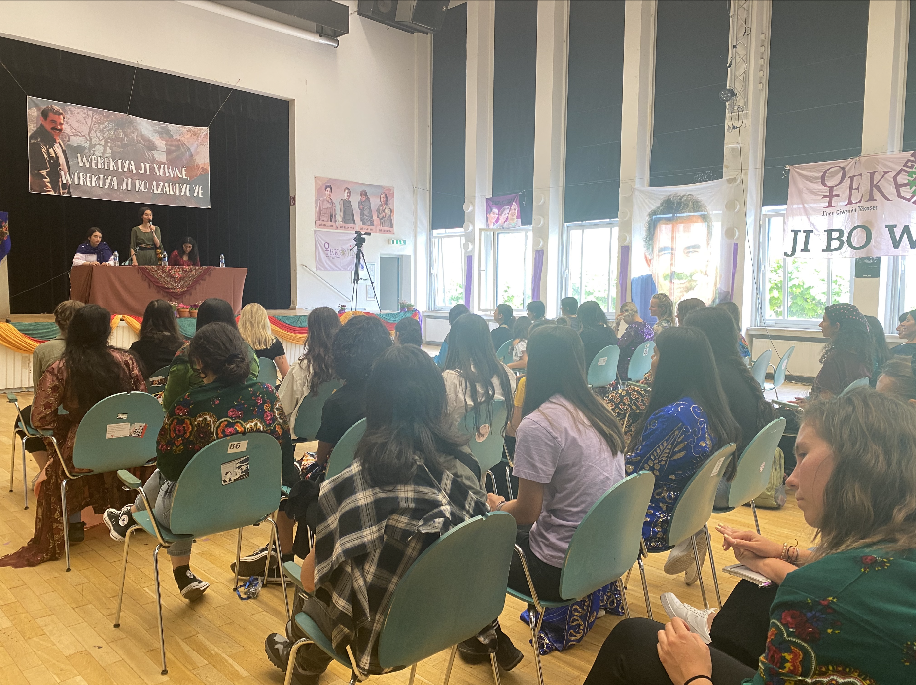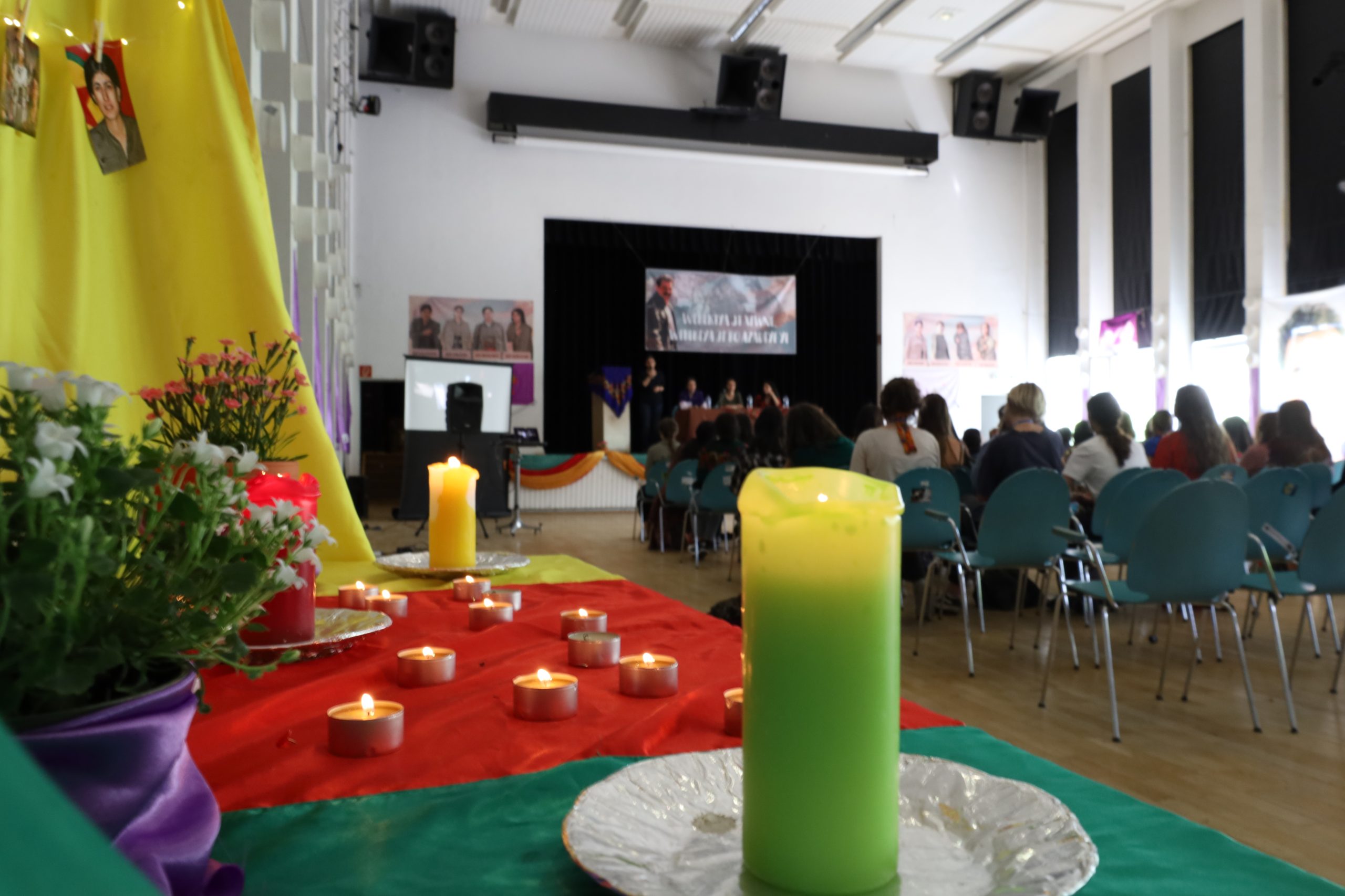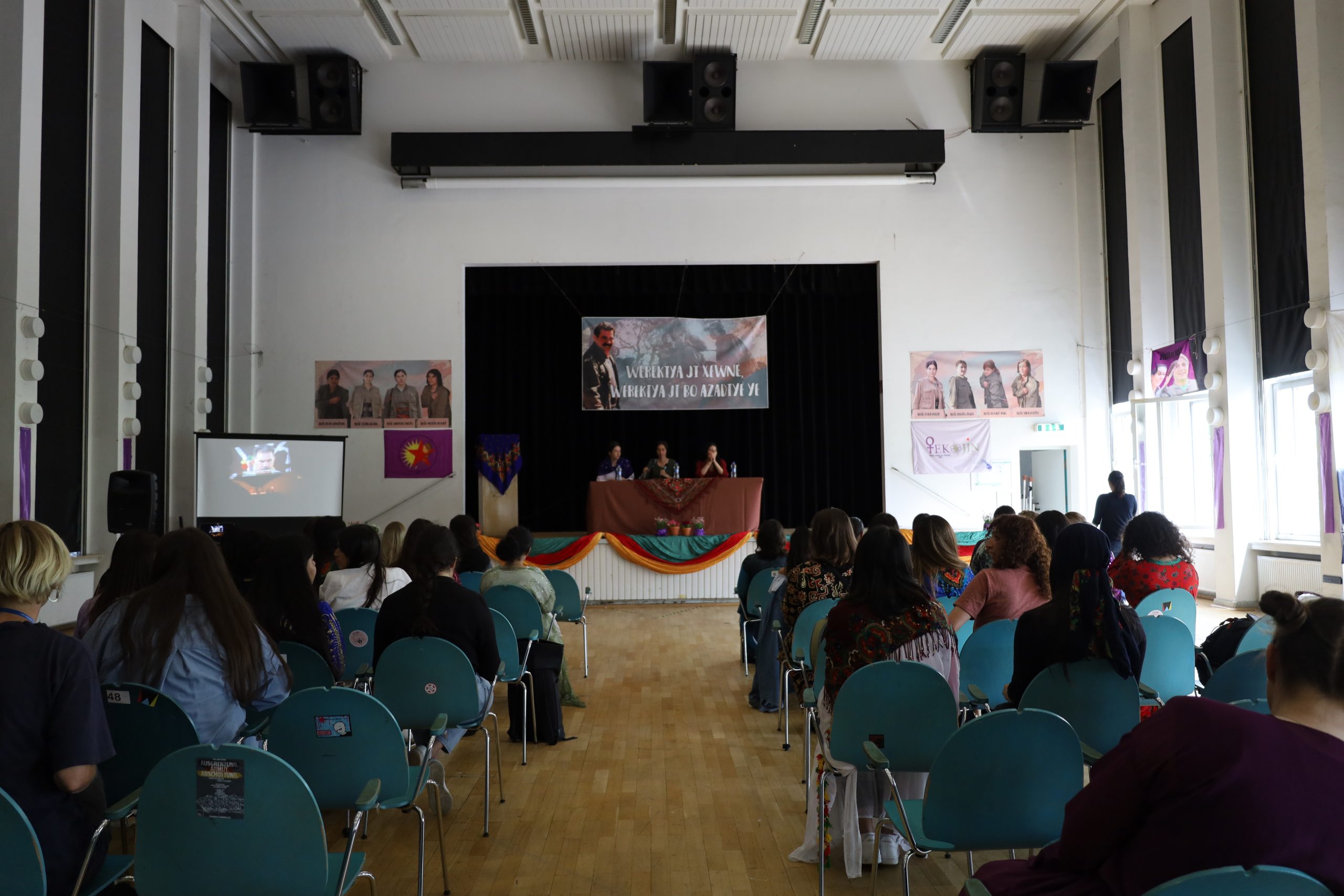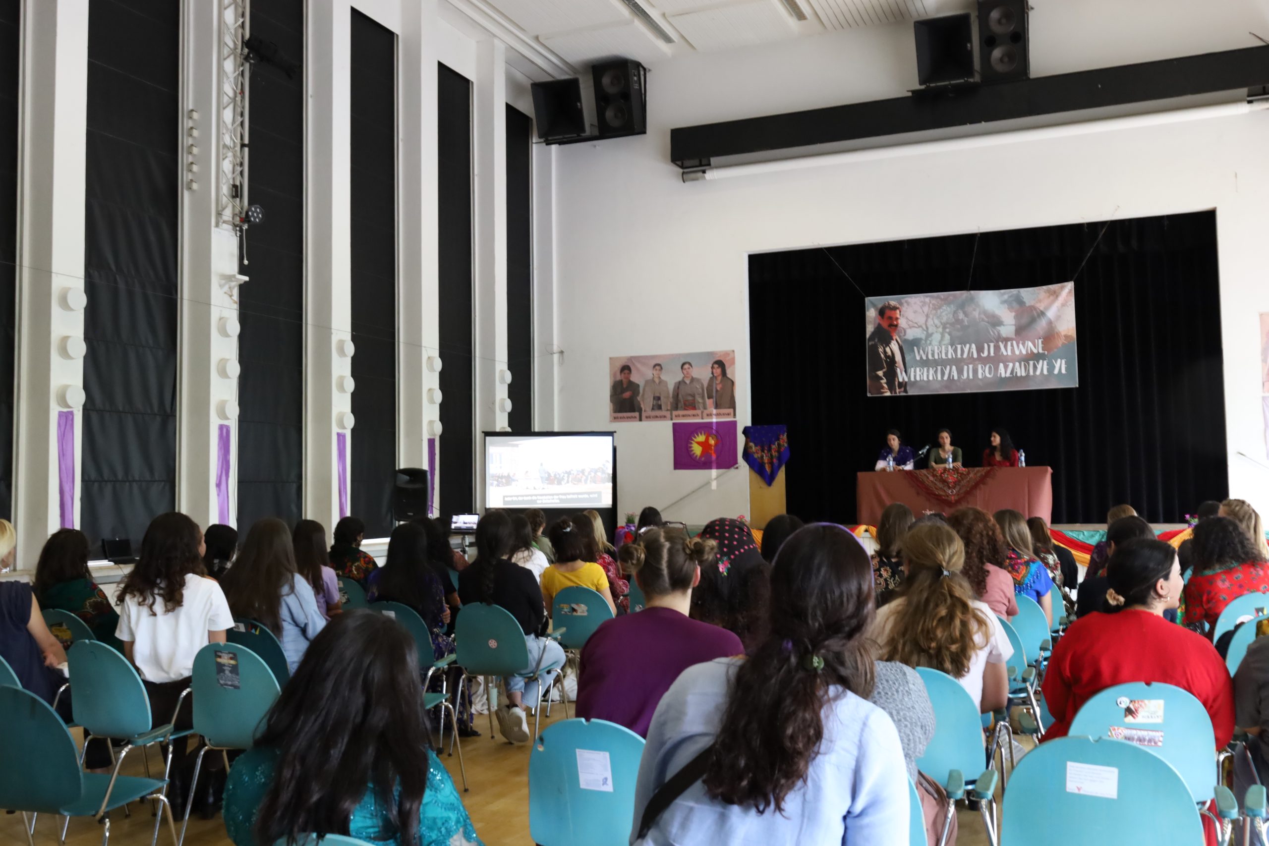 FRANKFURT – TekoJIN, 2’nci Genç Kadın Kongresi’ni 11 Haziran’da Almanya’nın Frankfurt kentindeki Goethe Üniversitesi’nde başladı. Avrupa’nın birçok yerinden Kürt ve enternasyonalist genç kadınlar kültürel kıyafetler giyerek kongreye katıldı. Kongrenin yapıldığı üniversite salonu, şehit fotoğrafları, TekoJIN, JXK bayrakları ve Halklar Önderi Abdullah Öcalan posterleriyle dekore edildi.