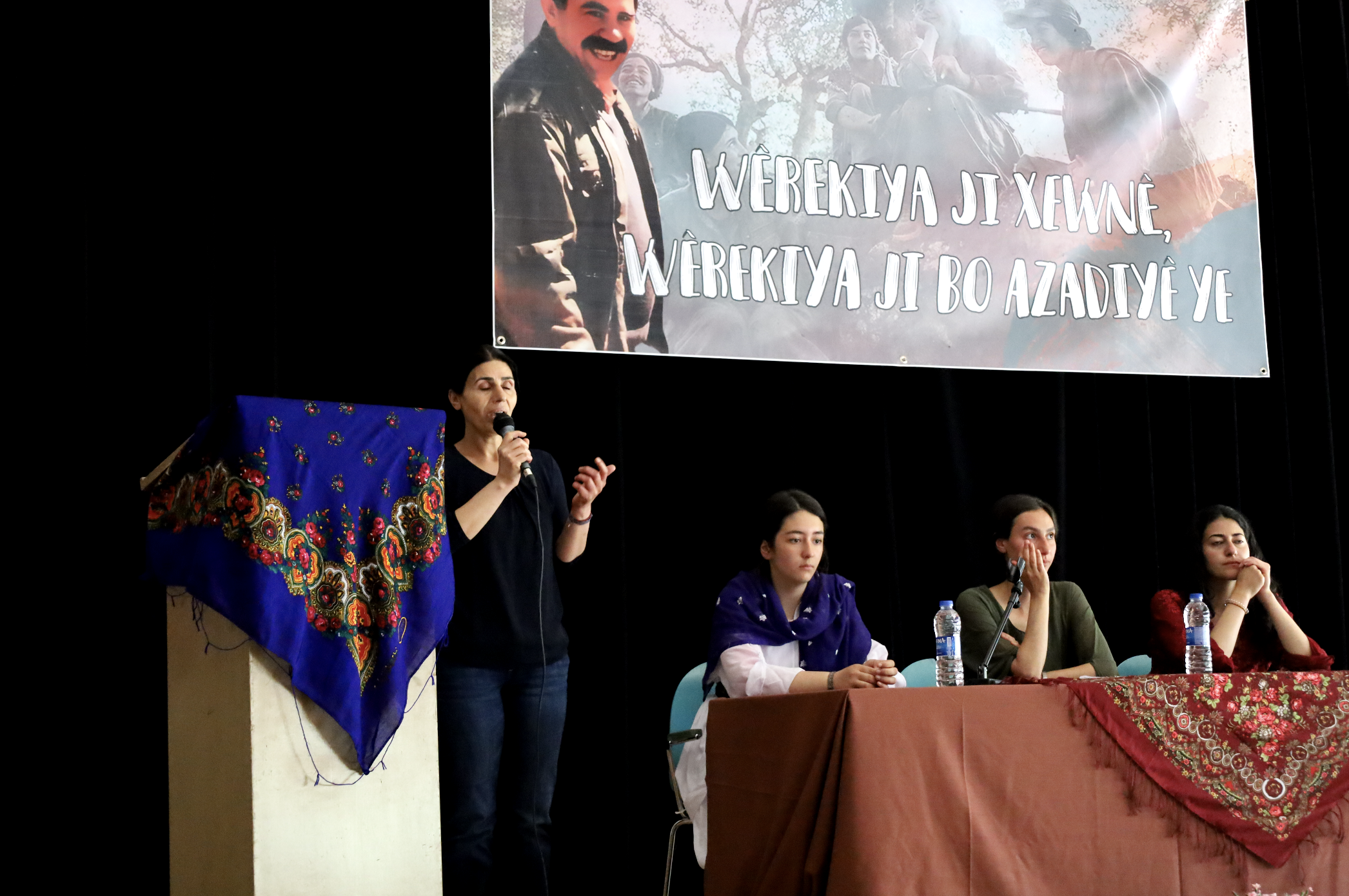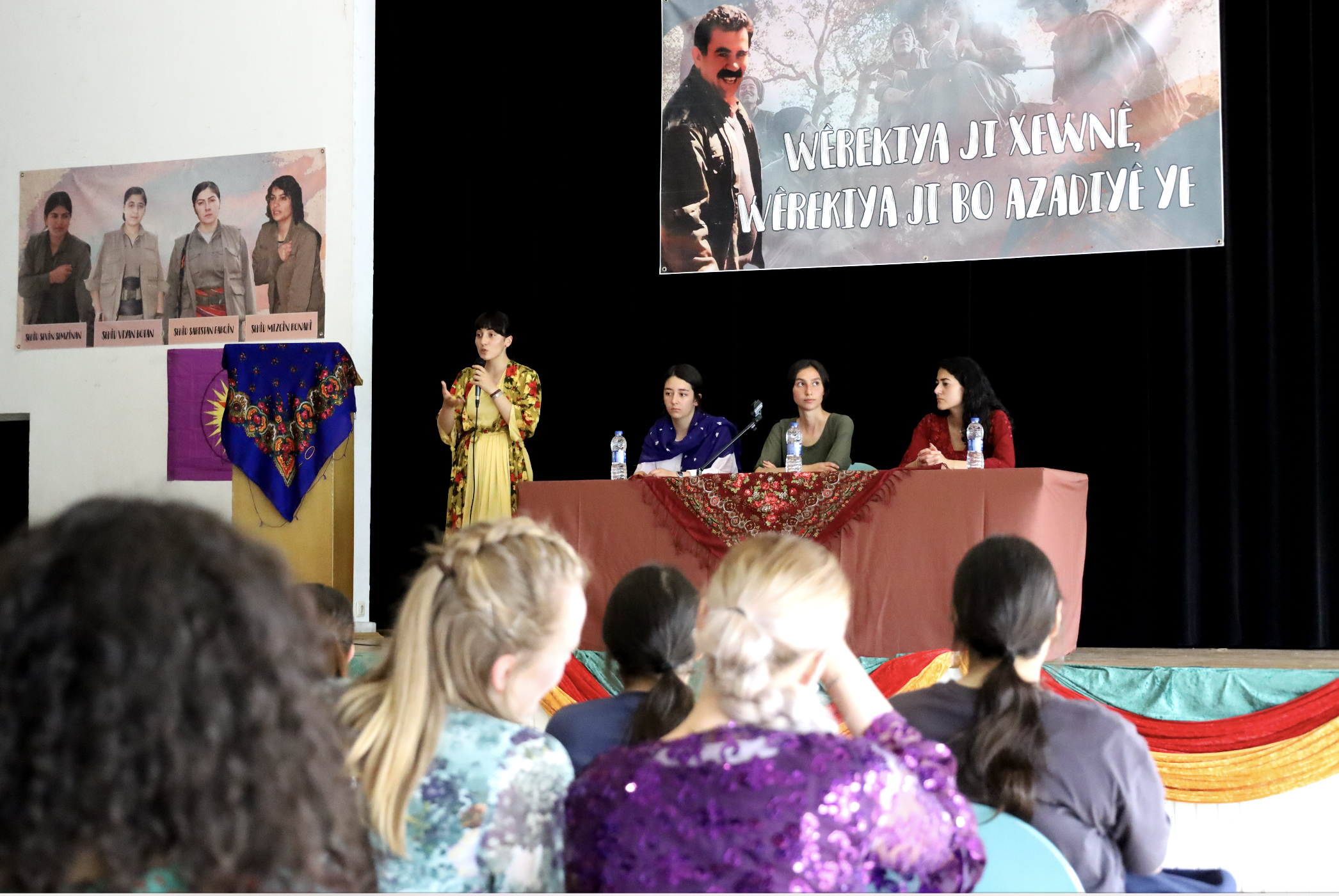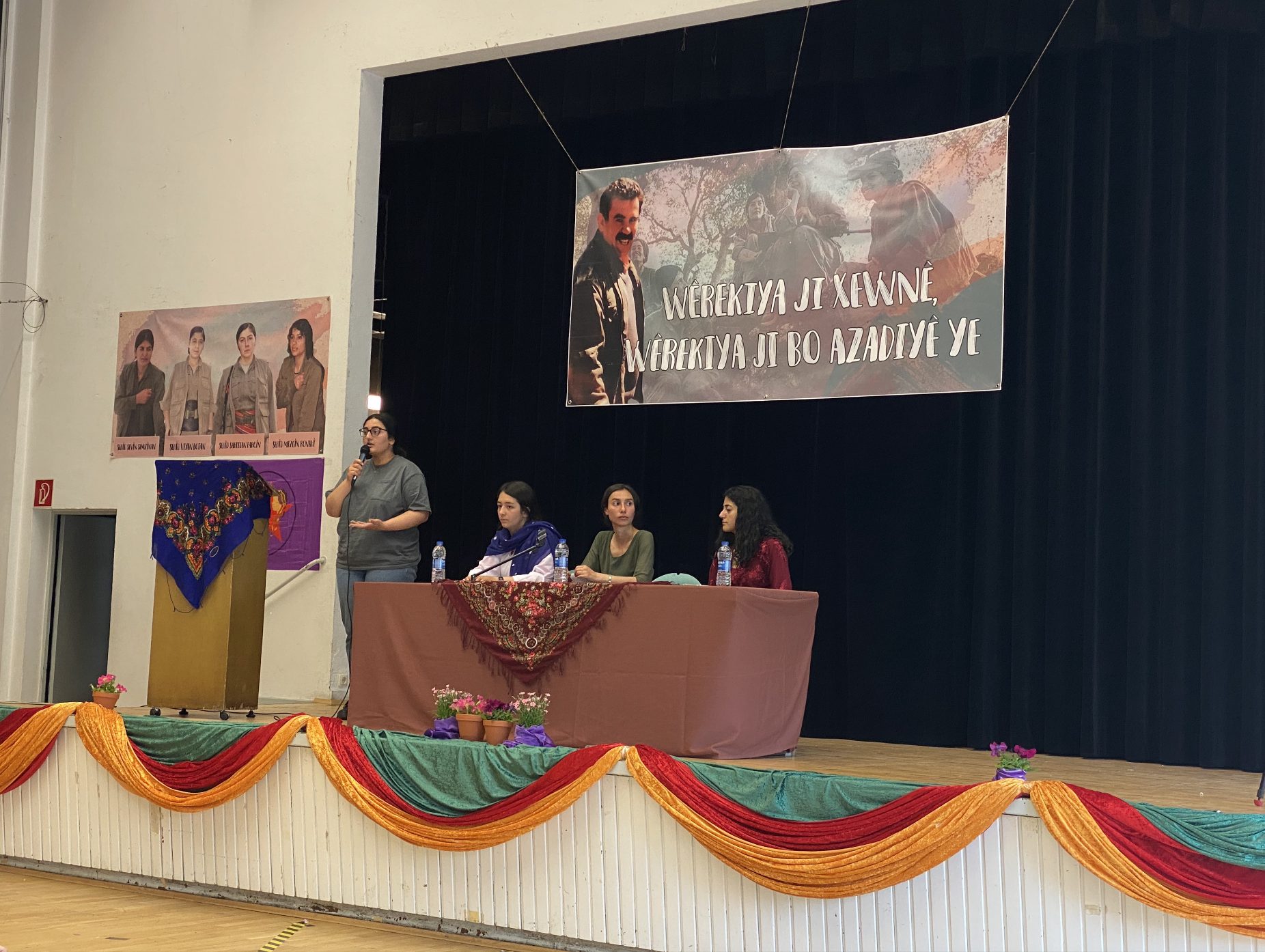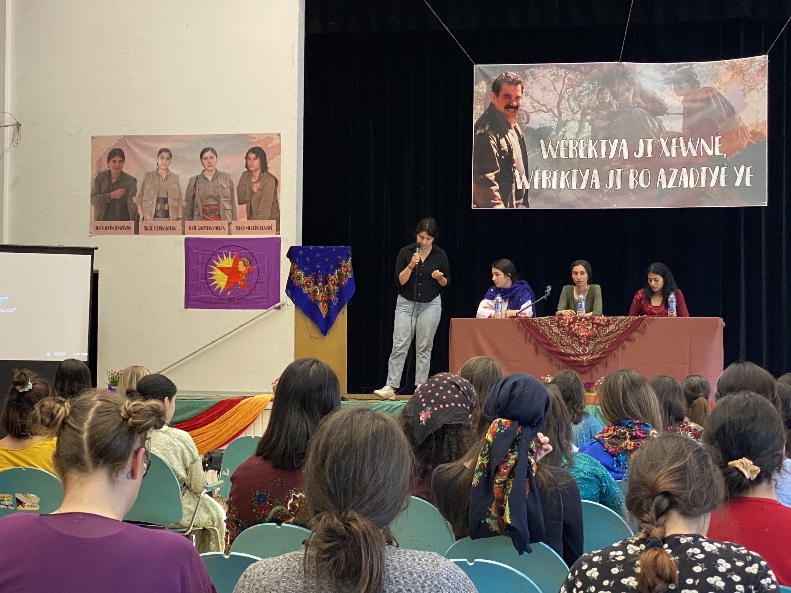 FRANKFURT – TekoJIN, 2’nci Genç Kadın Kongresi’ni 11 Haziran’da Almanya’nın Frankfurt kentindeki Goethe Üniversitesi’nde başladı. Avrupa’nın birçok yerinden Kürt ve enternasyonalist genç kadınlar kültürel kıyafetler giyerek kongreye katıldı. Kongrenin yapıldığı üniversite salonu, şehit fotoğrafları, TekoJIN, JXK bayrakları ve Halklar Önderi Abdullah Öcalan posterleriyle dekore edildi.