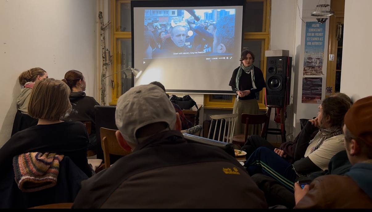 BERLİN- Almanya’nın başkenti Berlinde TekoJIN öncülüğünde, Yekîtiya Ciwanên Demokratîk (YUNA) ve Genç Kadınlar Komünü (JFK) ile birlikte “Arzela ji Amedê (Amed’den Arzela)” adlı belgesel filmi izledi. Gösterimden sonra yaklaşık 30 kişiyle film üzerine bir tartışma gerçekleştirildi.