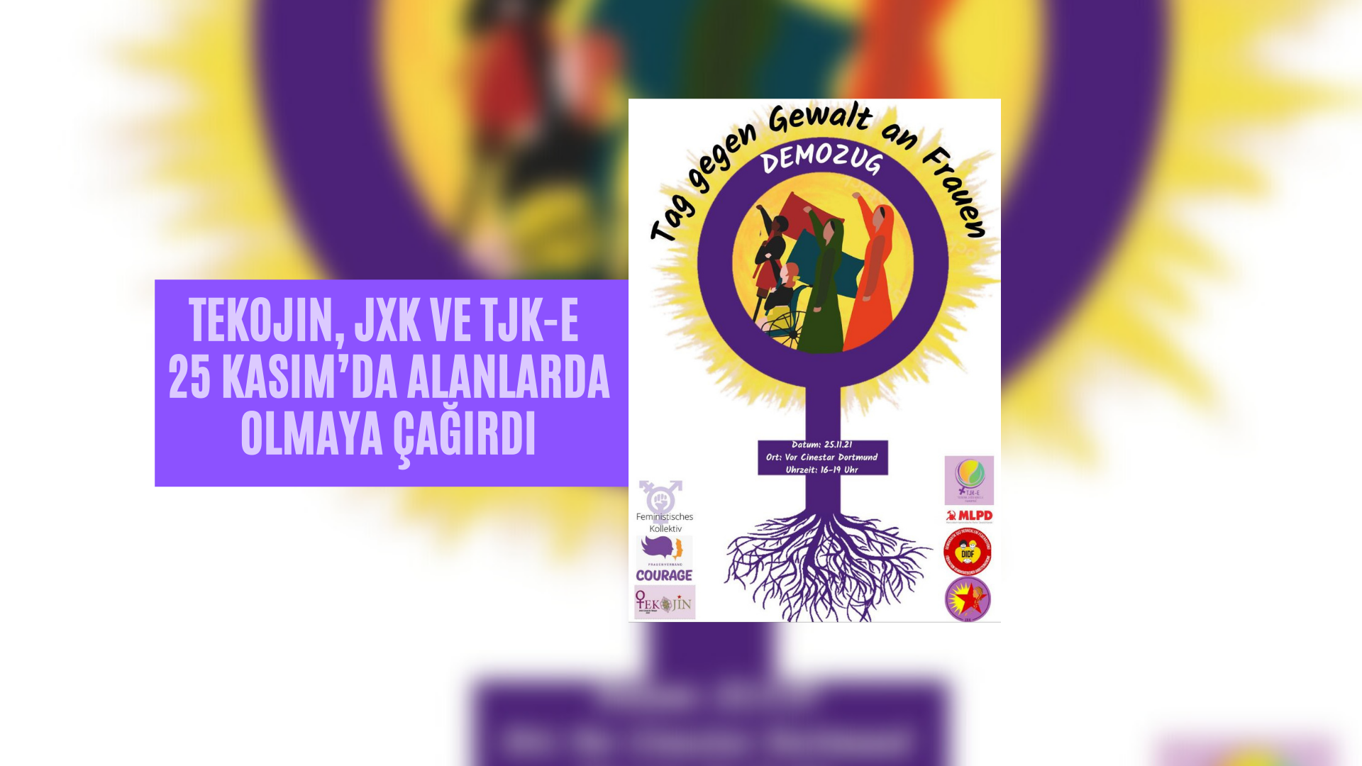 TekoJIN, JXK ve TJK-E aktivistleri Almanya’nın Dortmund kentinde, 25 Kasım Kadına Yönelik Şiddete Karşı Uluslararası Mücadele Günü’nde gerçekleştirecekleri eyleme ilişkin çağrıda bulundu.