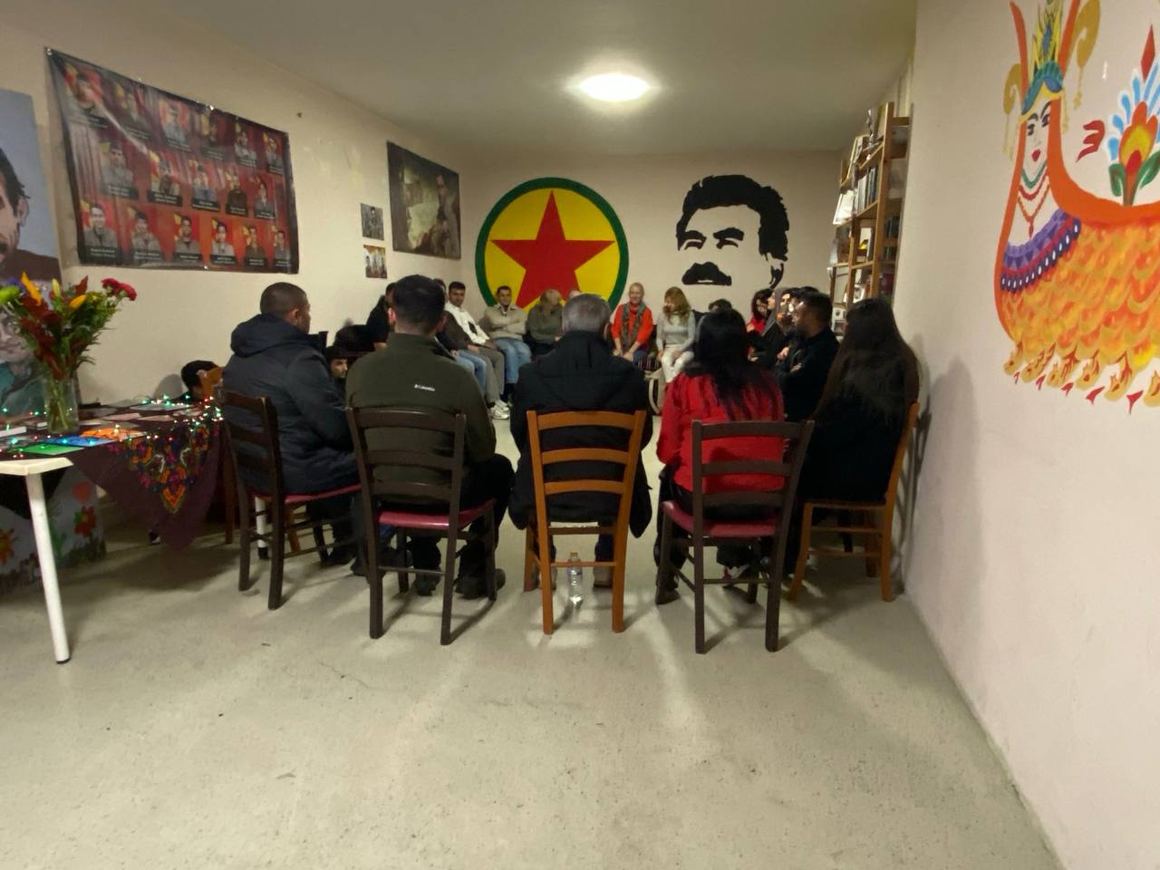 Buluşma, Berlin Demokratik Kürt Toplum Merkezi’nde (NAV-BEL) Ankara’da fedai eylem yapan şehîd Rojger Hêlîn ve şehîd Asya Ali şahsında tüm Kürdistan Devrim Şehitleri için bir dakikalık saygı duruşu ile başladı.