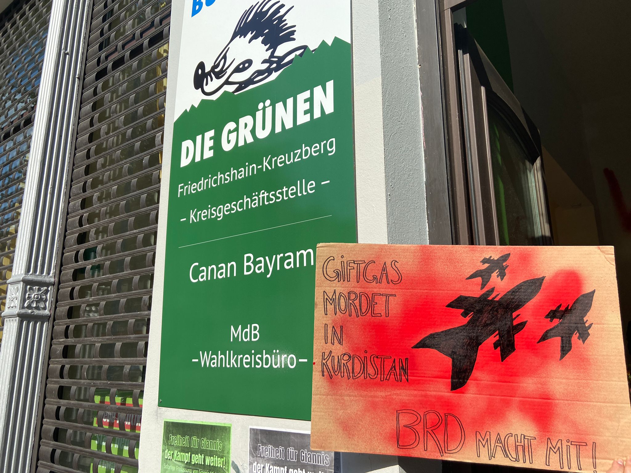 TekoJIN ve enternasyonalist genç kadınlar Berlin'de Yeşiller Partisi Milletvekilli Canan Bayram´ın bürosuna dönük işgal eylemi gerçekleştirdi. Eylemin işgalci TC devletinin Medya Savunma Alanları'nda sürdürdüğü işgal saldırılarına ve kimyasal silah kullanımına karşı gerçekleştirildiği belirtildi.