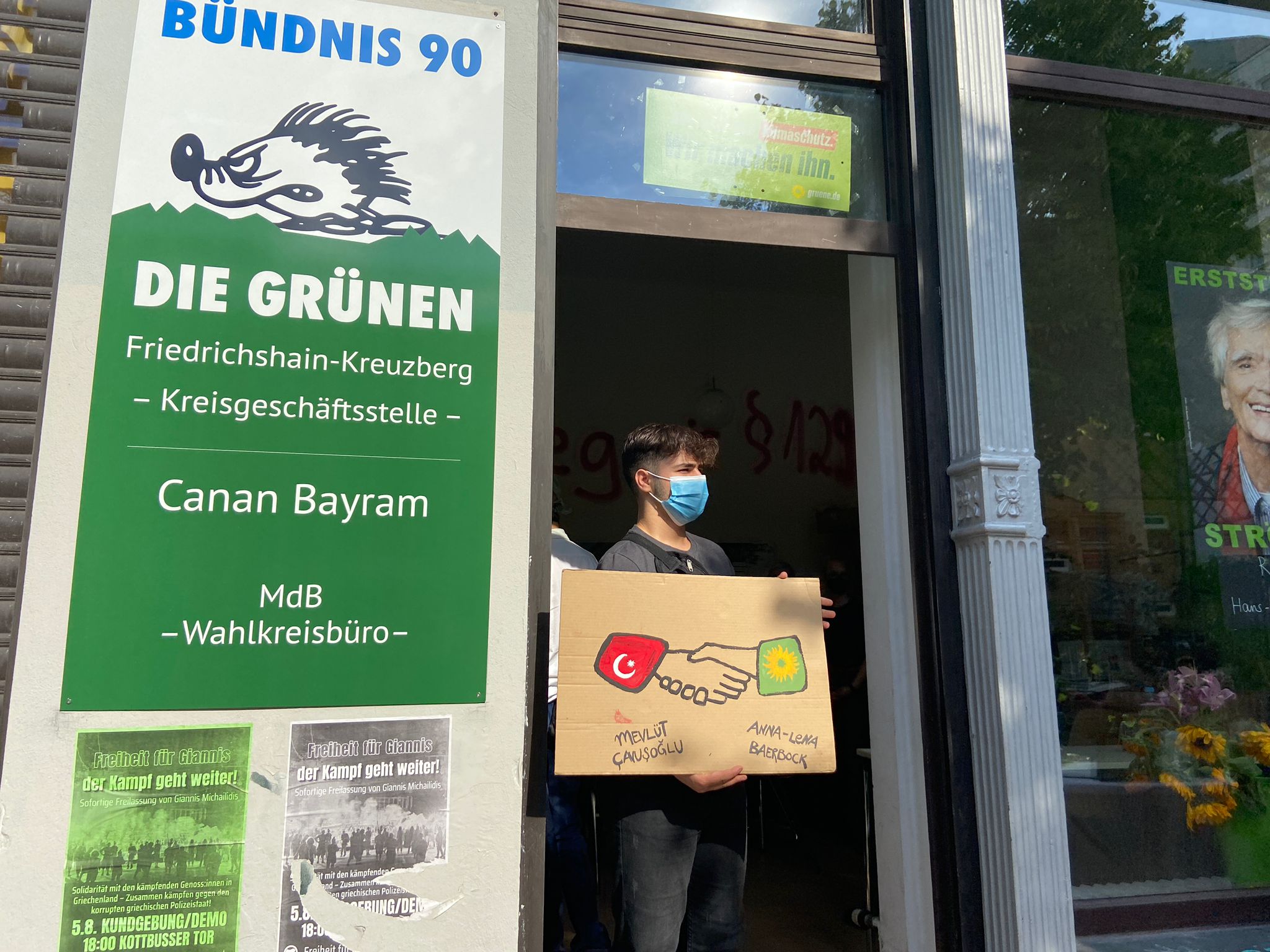 25 aktivist tarafından gerçekleştirilen ve  saat 15.00’da  başlayan eylemin, Yeşiller Partisi (Die Grünen) Milletvekili Canan Bayram gelene kadar devam edeceği belirtti.