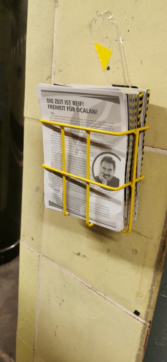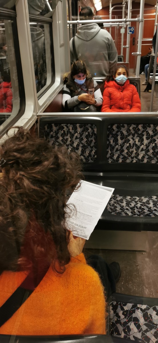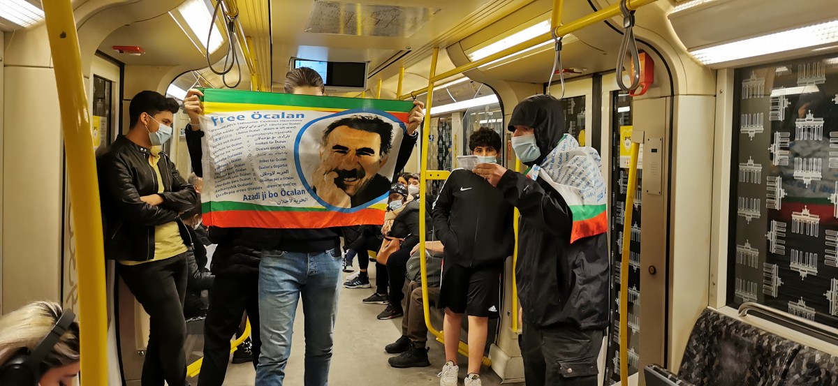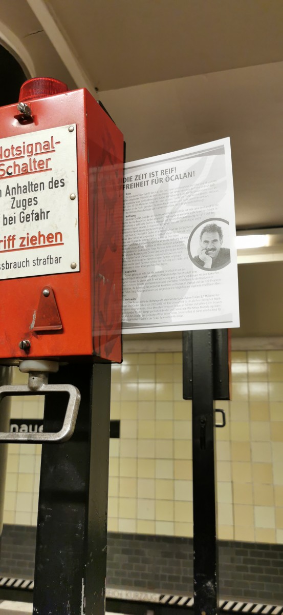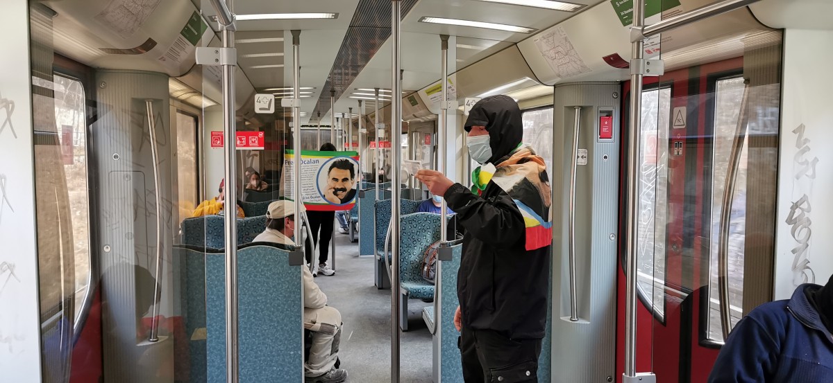 BERLİN – Almanya’nın başkenti Berlin’de TekoJIN ve TCŞ aktivistlerinin “Tecride, Faşizme, İşgale Son: Bi Hev Re Serhildan” şiarıyla Halklar Önderi Abdullah Öcalan’ın özgürlüğü eylemleri sürüyor. Gençler halkın yoğun olduğu trenlerde Önder Öcalan’ın özgürlüğü ile ilgili bildiriler dağıttıp Berlin halkını bilgilendirdiler.