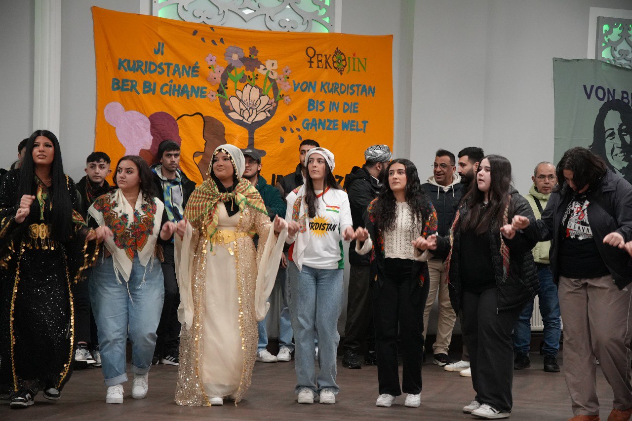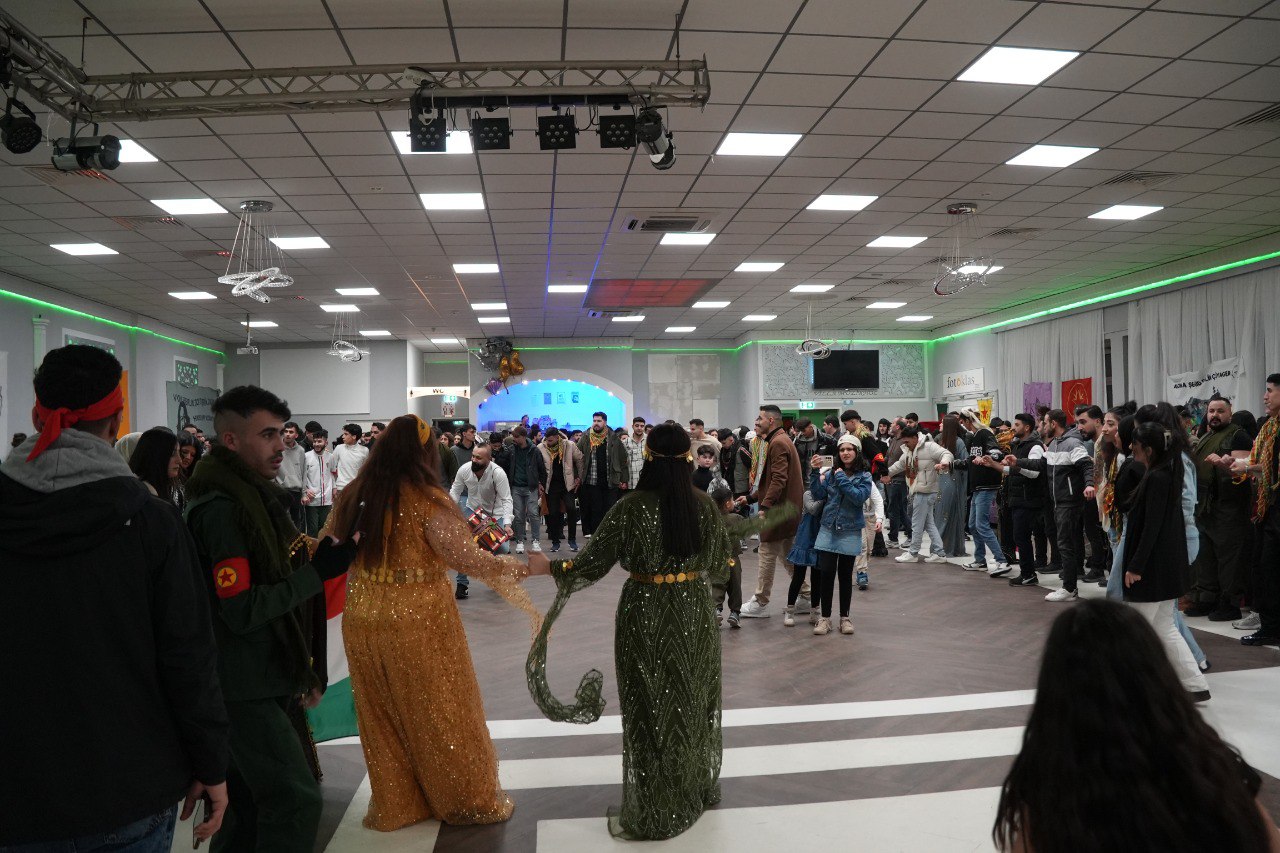 Sanatçılar Bengî Agirî, Hozan Comerd, Serhado ve Mithra Band eserlerini seslendirdi ve şiirler okundu. Halaylar eşliğinde sürekli “Biji Serok APO”, “Biji Berxwedana YPJ-YPG” ve “Biji Berxwedana Gerîla” sloganları atılarak gece sona erdi.