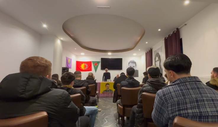 BERLIN – 9 Ekim uluslararası komplonun yıldönümünün yaklaşmasıyla birlikte, “Önder APO’ya Özgürlük Kürt Sorununa Çözüm” hamlesi çerçevesinde etkinlikler tüm hızıyla devam ediyor. Bu kapsamda, TekoJIN ve TCŞ üyeleri Almanya’nın başkenti Berlin’de Önder APO şahsında Kürt halkına yönelik düzenlenen komplo ve gelinen aşamaları ele alan bir seminer düzenledi.
