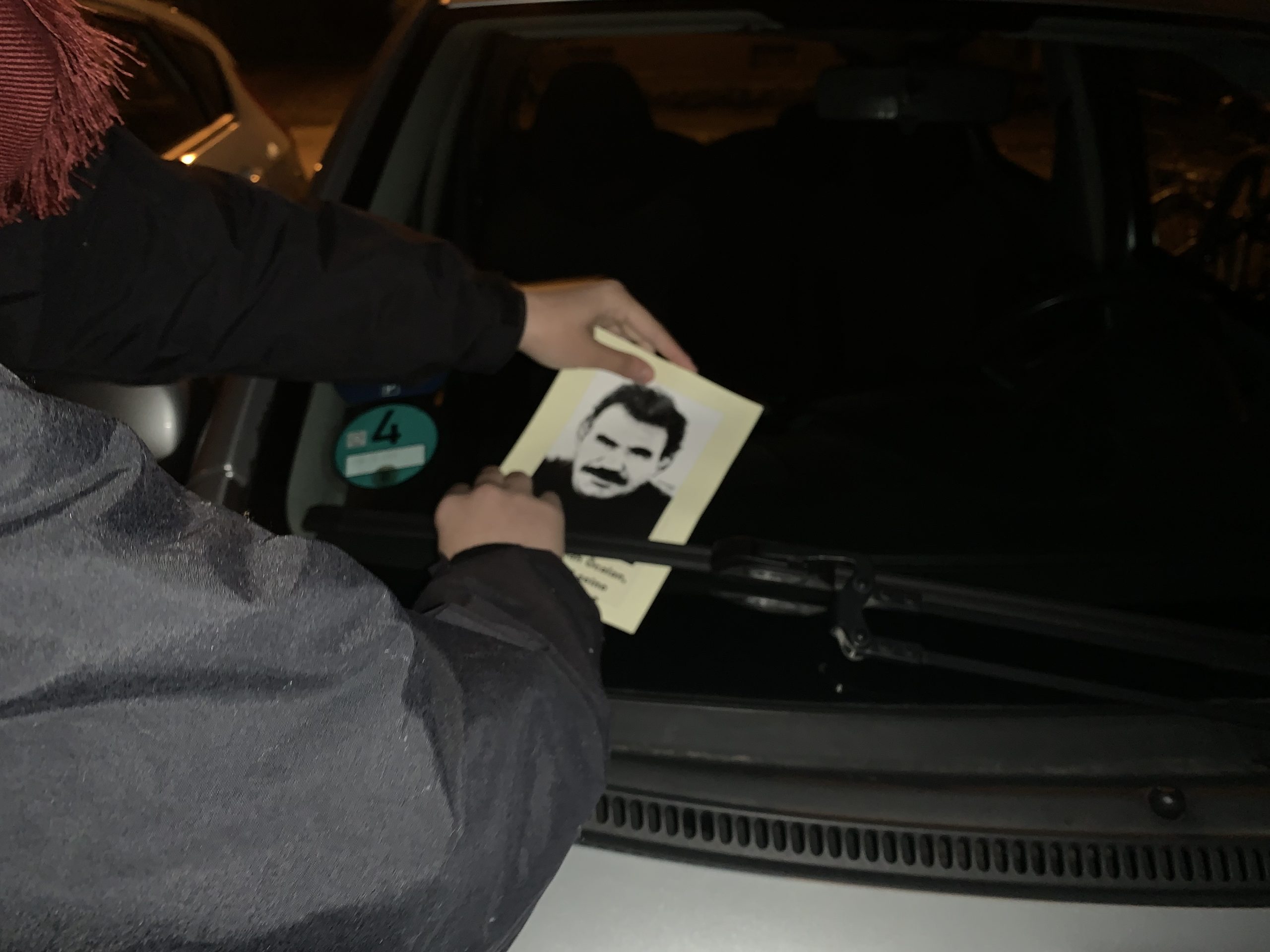 Genç kadınlar tarafından şehir merkezinin en işlek caddelerinde yaklaşık bir saat boyunca sürdürülen eylemde, sokaklarda duvarlara “Güneşimizi Karartamazsınız” ve “Öcalan’a Özgürlük” yazıldı. Evlerin posta kutularına ve araba camlarının üzerine “Abdullah Öcalan’ın özgürlüğü neden sağlanmalıdır” konulu bildiriler de bırakılırken, bir köprü üzerine de “Öcalan’a Özgürlük pankartı asıldı. Yapılan eylem, TekoJIN adına yapılan açıklamanın ardından sona erdi.