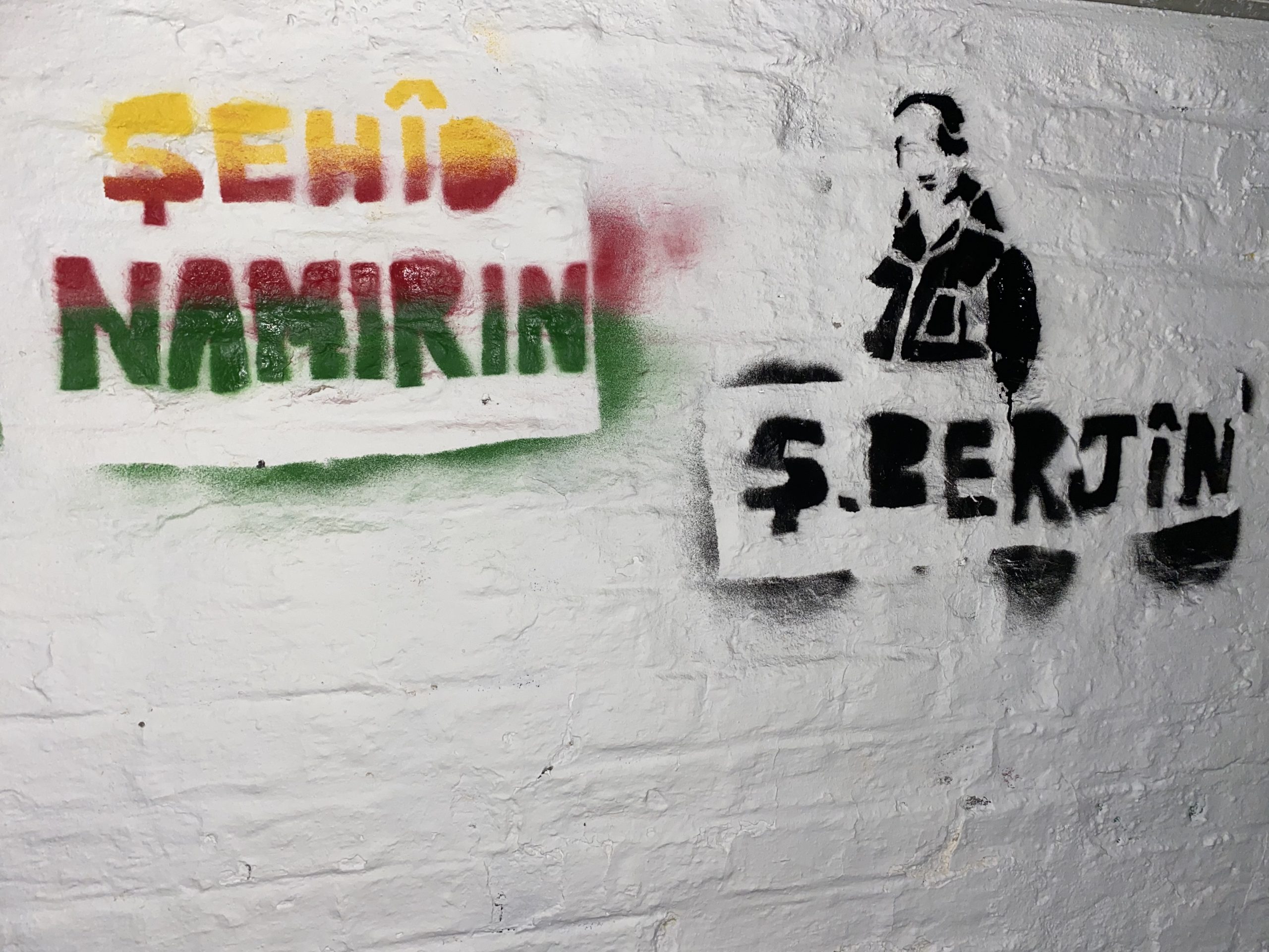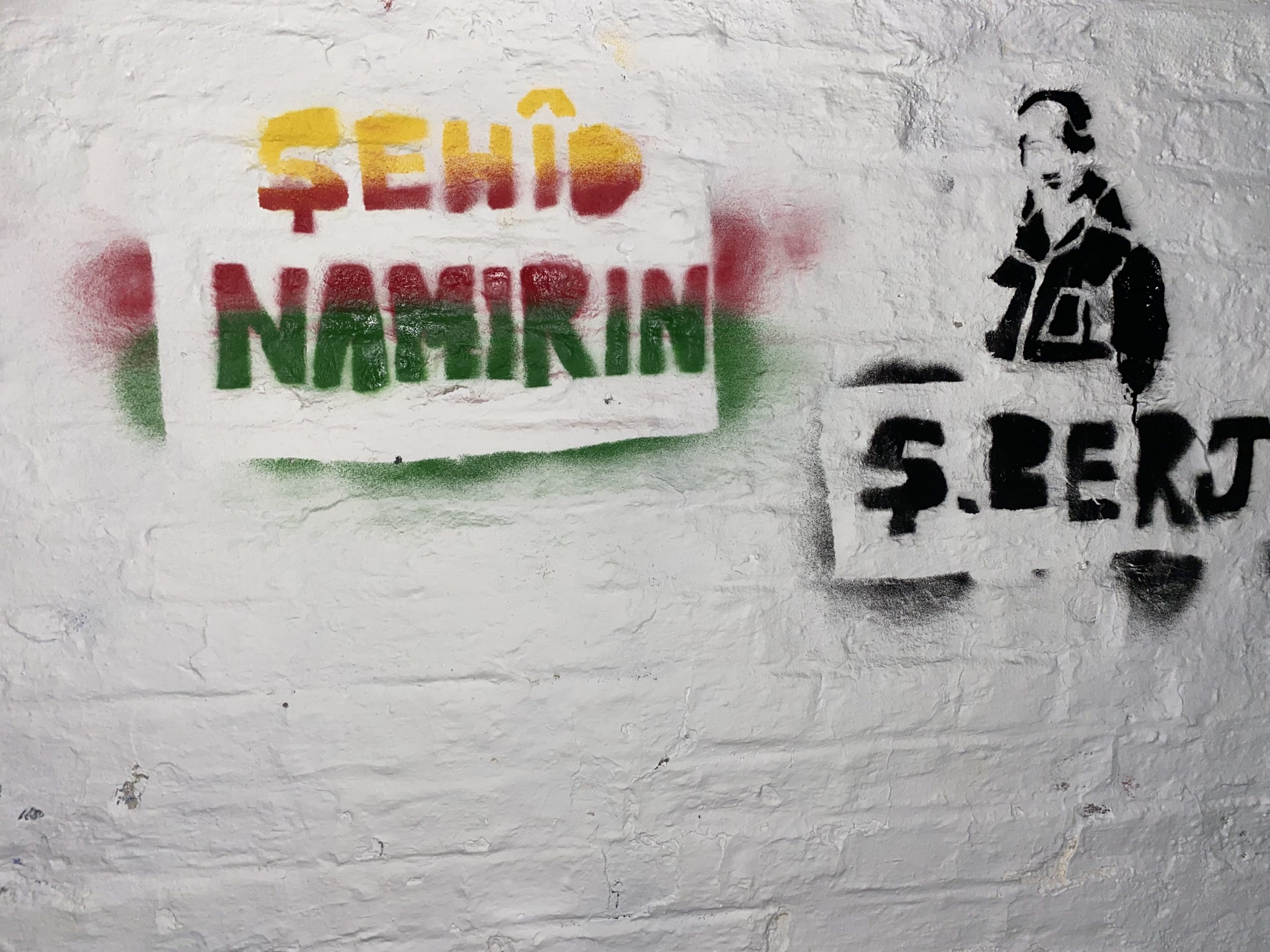 7 Temmuz 2021’de Heftanîn de faşist TC zihniyeti tarafından yapılan bombardırman sonucunda şehit düşen Berjîn Zenda anısına genç kadınlar yazılama yaptı.