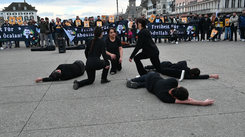 İsviçre Demokratik Kürt Kültür ve Sanat Hareketi, "Önder Apo'ya özgürlük, Kürt sorununa demokratik çözüm" hamlesi kapsamında Zürih’te görsel eylem gerçekleştirdi.