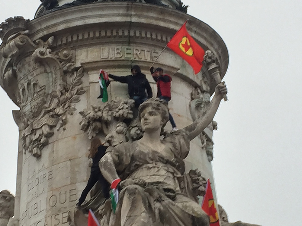 Erdoğan’ın Fransa’ya gelişini protesto eden Tevgera Ciwanên Şoreşger Paris’in Republique Meydanı’nda bir eylem yaptı.