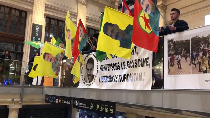 BORDEAUX – Fransa’nın Bordeaux şehrinde Tevgera Ciwanên Şoreşger aktivistleri Saint-Jean tren garında bir eylem gerçekleştirdi. Yaklaşık 20 Kürt genci tren garında bir sivil itaatsizlik eylemi düzenledi. Gençler, Halklar Önderi Abdullah Öcalan’ın üzerindeki tecrit işkencesinin son bulması talebiyle ve Leyla Güven öncülüğünde devam eden süresiz açlık grevlerine destek amacıyla bu eylemi yaptıklarını açıkladılar. Eylemde bildiri okunduktan sonra Fransızca “Öcalan’a özgürlük” sloganları atıldı.