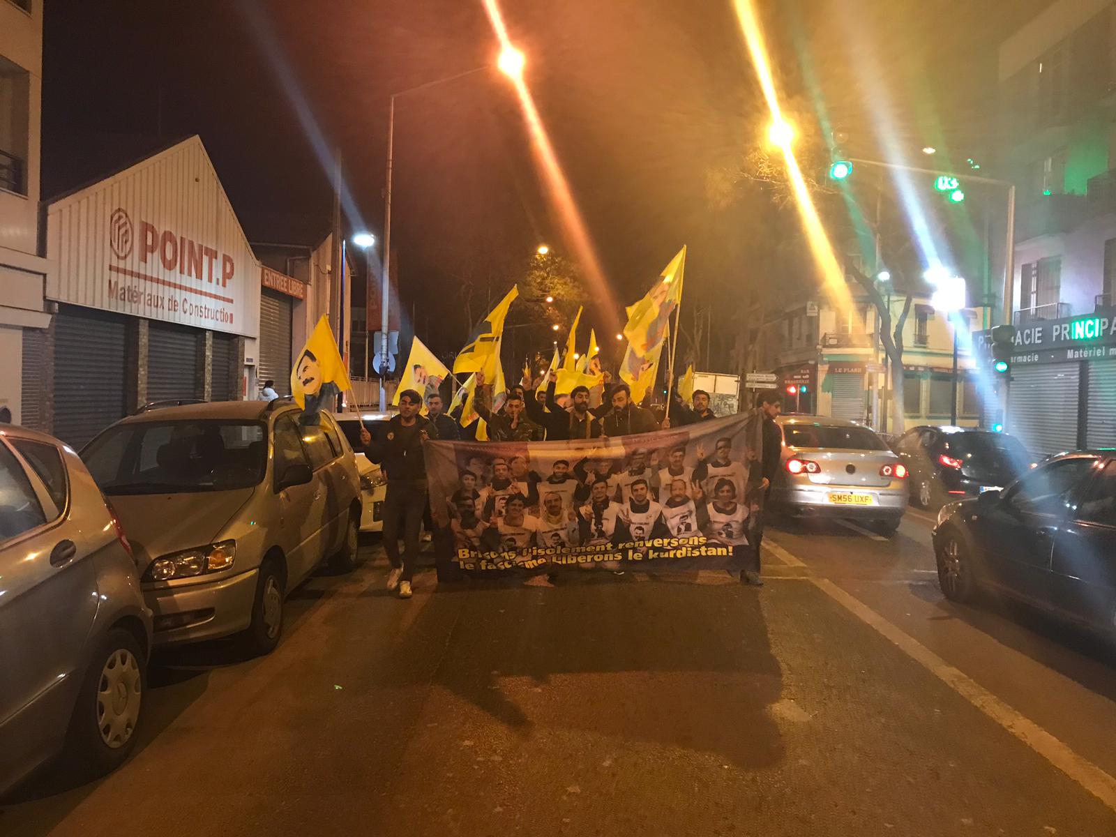 Yapılan yürüyüşte Strasbourg’da açlık grevinde olan arkadaşların pankartları ve Halklar Önderi Abdullah Öcalan posterleri taşındı. Yürüyüş sırasında Bijî Berxwedana Zindana sloganları ve gençlerin moralleri dikkat çekti.