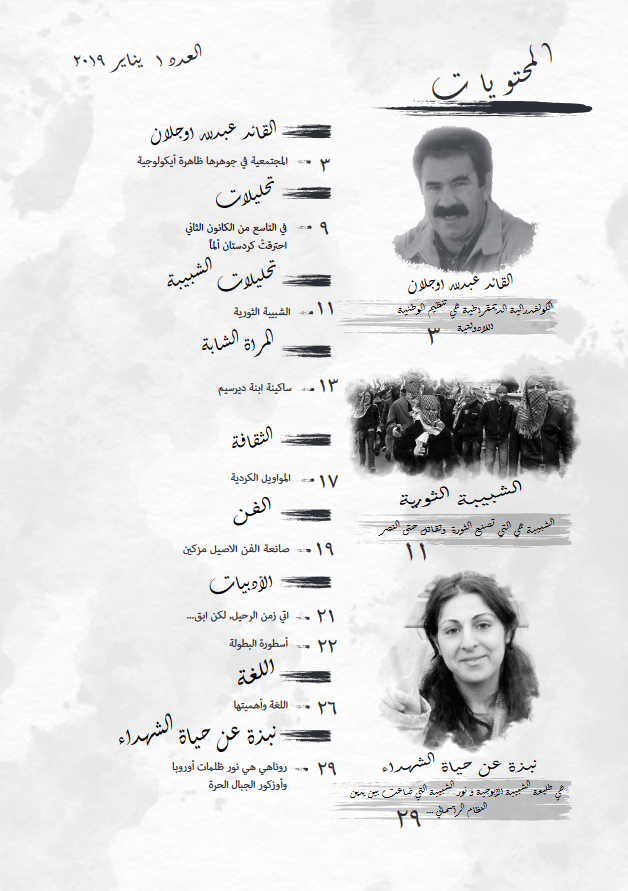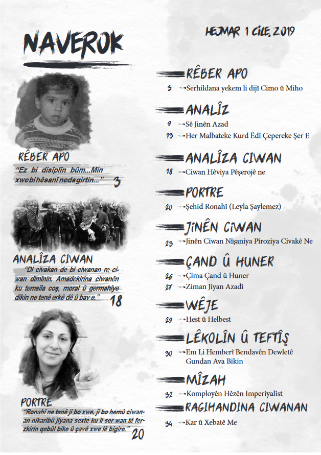 Birinci sayısında Editör derginin içeriğine dair şunları söylemekte” Birinci sayıda Özgürlük Hareketi ve Serhildanlar , Halklar Önderi Abdullah Öcalan’ın yazıları yanı sıra Şehit arkadaşların yazıları bulunmakta. Editör’ya olarak siz değerli okuyucularımızın merakla okuyacağı bir dergi olmuştur.