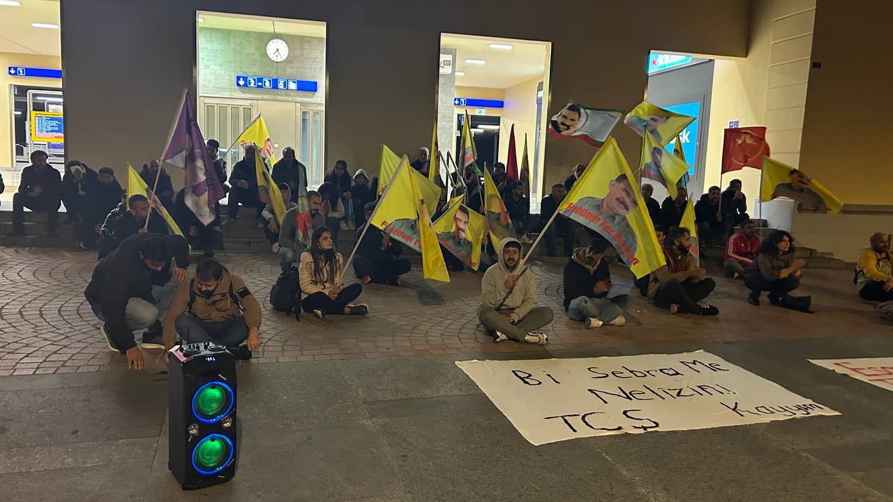 “Ciwan Fedaiyên Rêber Apo ne” sloganı ile sona eren basın açıklaması ardından oturma eylemi gerçekleştirildi. Oturma eylemi sırasında “Lêxin Birano” şarkısı seslendirildi.