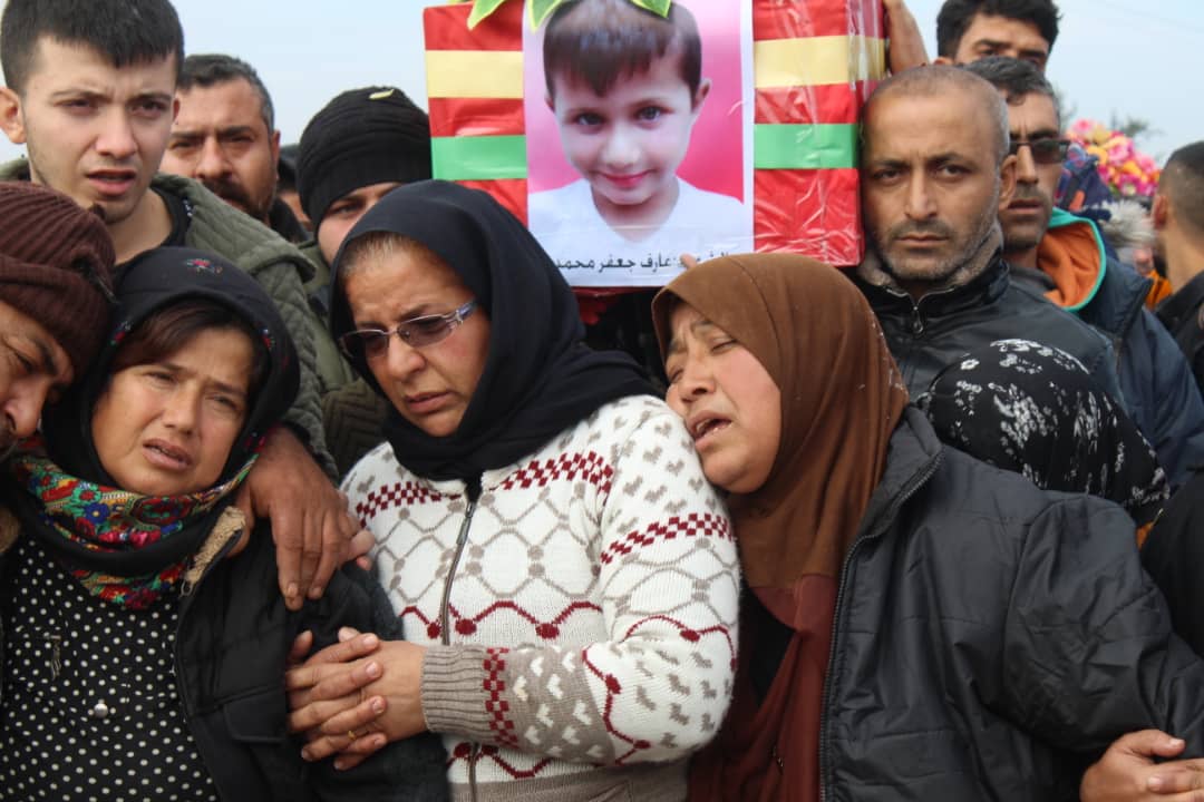 İşgalci Tük devleti ve çetelerince katledilen Efrînli göçmenleri son yolculuklarına uğurlamak için, binlerce Efrînli bir araya gelerek kitlesel bir tören düzenledi