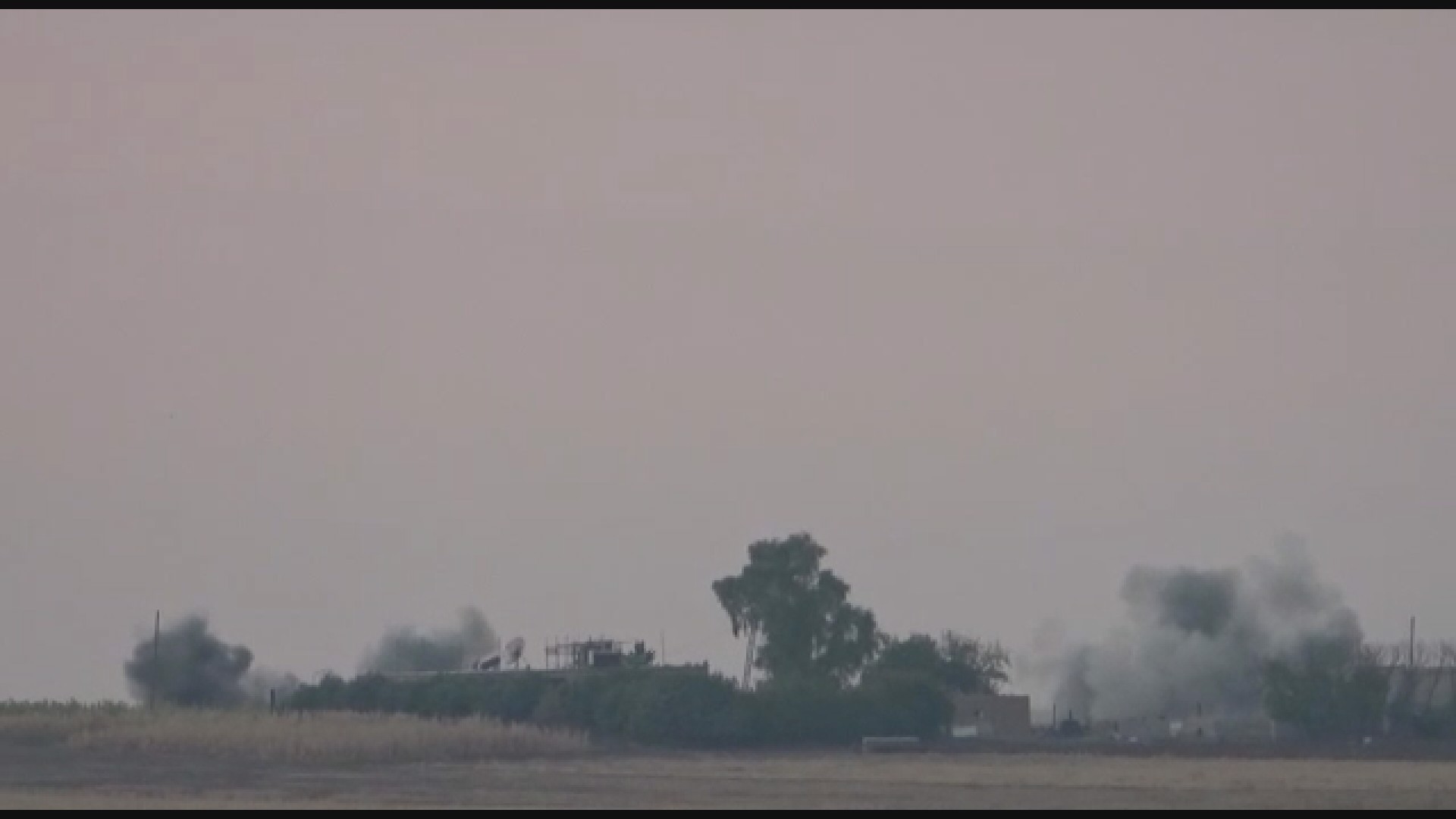 İşgalci Türk devleti çeteleri Til Temir’in Menax köyünü bombardımana tutuyor.
