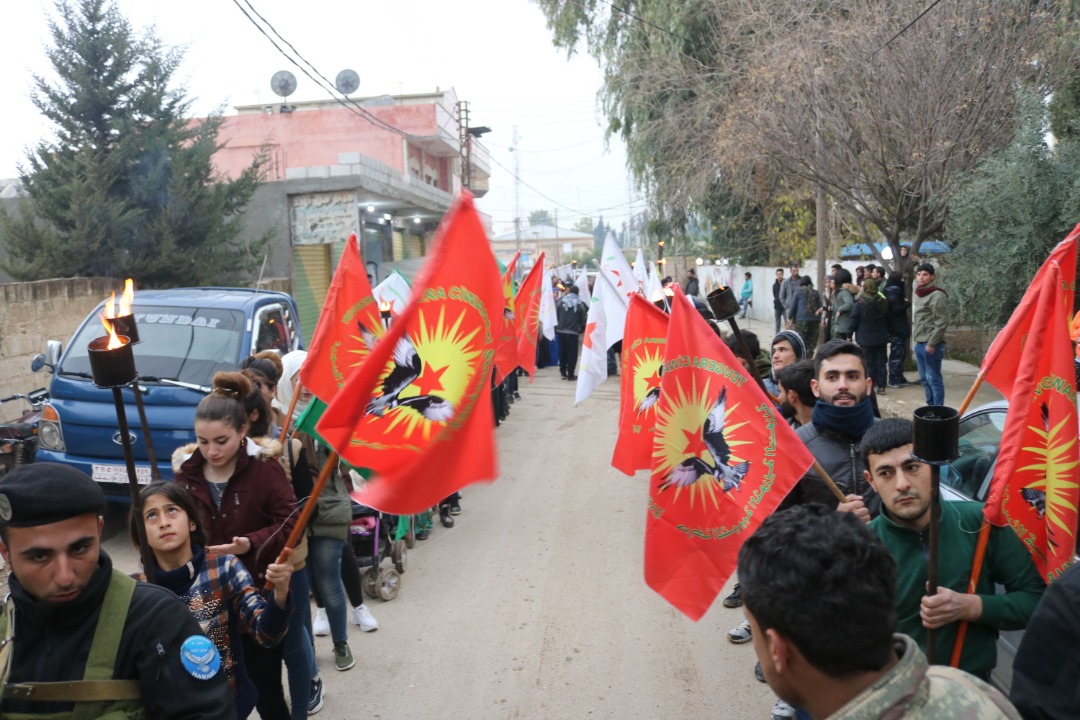 Tevgera Ciwanên Şoreşger ve Yekîtiya Jinên Ciwan öncülüğünde Til Temir’da yüzlerce genç Devrimci Halk Savaşıyla İşgalciliği Kürdistan’dan atacağız şiarıyla yürüyüş gerçekleştirdi.