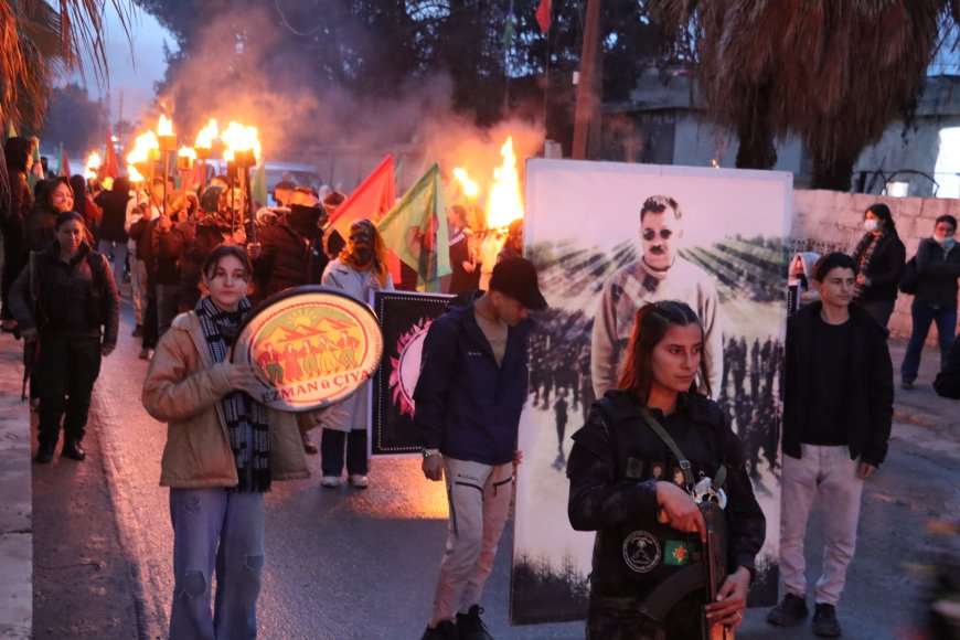 HABER MERKEZİ – Tevgera Ciwanên Şoreşger ve Yekitiya Jinên Ciwan, Önder Apo’ya yönelik 15 Şubat 1999’da gerçekleştirilen Uluslararası Komplo’yu kınamak amacıyla Tirbespiyê’de meşaleli yürüyüş düzenledi.